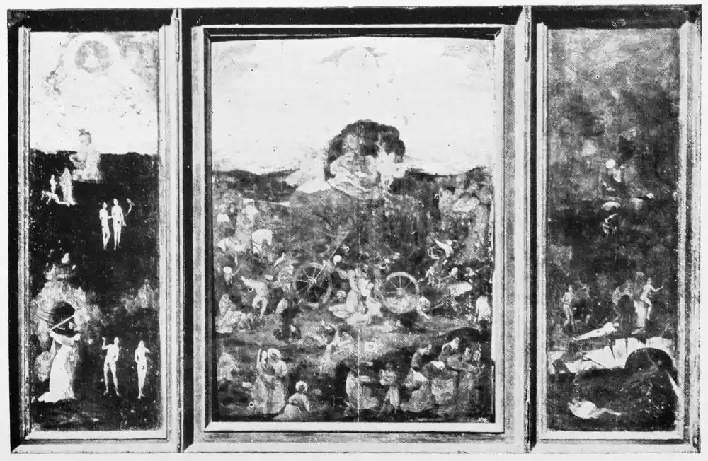 The heavy cost of erecting the Escorial increased the amounts paid in taxation, and among the people of Spain there was some discontent with the expenditure. There was also disaffection upon one or two occasions among the mechanics employed upon the building. The{14} cause, or the effect, of this insubordinate feeling was the rumour that Satan in the guise of a hound with wings prowled about the corridors in the dark. A friar hearing certain gruesome sounds during matins, went out to investigate the cause of the disturbance, and discovered a stray dog wandering in the building. The dog was promptly hanged, and his carcass exposed on the exterior of the edifice;—proof positive that the mysterious visits were at an end.