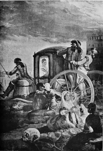 About the year 1582 the king was seized with a distemper of an epidemic character, and was so prostrated that he prepared himself for death, and wrote his will. But his disorder, although dangerous, was not fatal, though the queen, who was also attacked, died in this same year. She was interred among other royal persons in the Escorial. The death of Philip II. occurred in 1598. He was indisposed at Madrid, and desired to be at once removed to his beloved Escorial. So severe was his illness that it was necessary to bear him thither slowly in a litter. Six days were spent in conveying the stricken monarch over the eight leagues from Madrid to the palace among the Guadarrama Mountains.