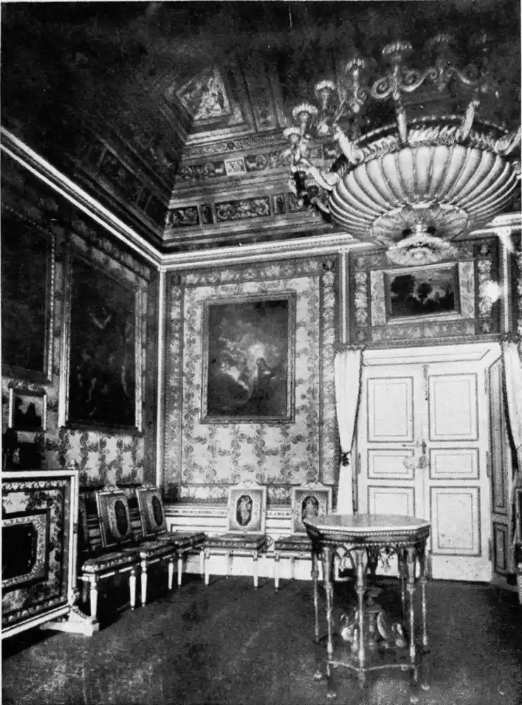 It was at the Escorial that Charles IV. unearthed a plot concocted by the queen, Godoy, and Prince Fernando, with the object of betraying Spain to France. The prince was placed in confinement at the Monastery, and his tutor and other members of the royal household were also imprisoned. It is probable that Canon Escoiquiz, one of the Court, was in treaty with Napoleon’s representatives. Fernando was tried and pardoned, though his part in the conspiracy seemed to admit of no doubt.