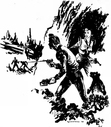 They came slowly, taking advantage of every bit of cover. Andy watched and grimly waited, pushing his blaster into position. He had no illusions on this matter, but he was aware that the girl was protesting.