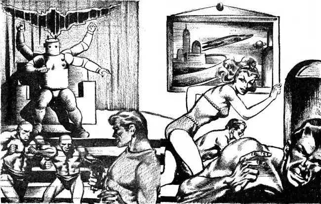 Garth felt again that sick deadness in his brain—the monstrous question that had been tormenting him for five years now. Abruptly he slammed his fist on the table. Tolomo's face appeared behind a curtain and vanished again as Brown waved him back.