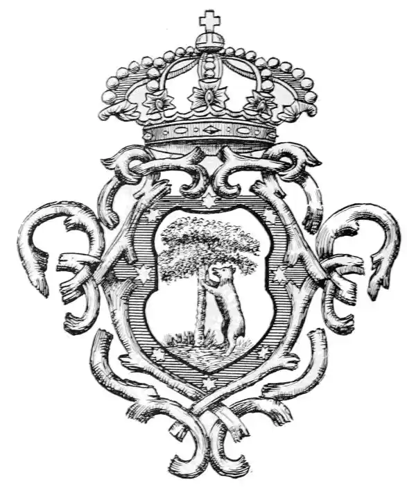 The arms of the city are a tree in leaf, with a bear climbing up the stem, and the escutcheon is surmounted by a crown. Madrid bears the title, “Imperial y coronada, muy noble y muy leal y muy heroica.{32}”