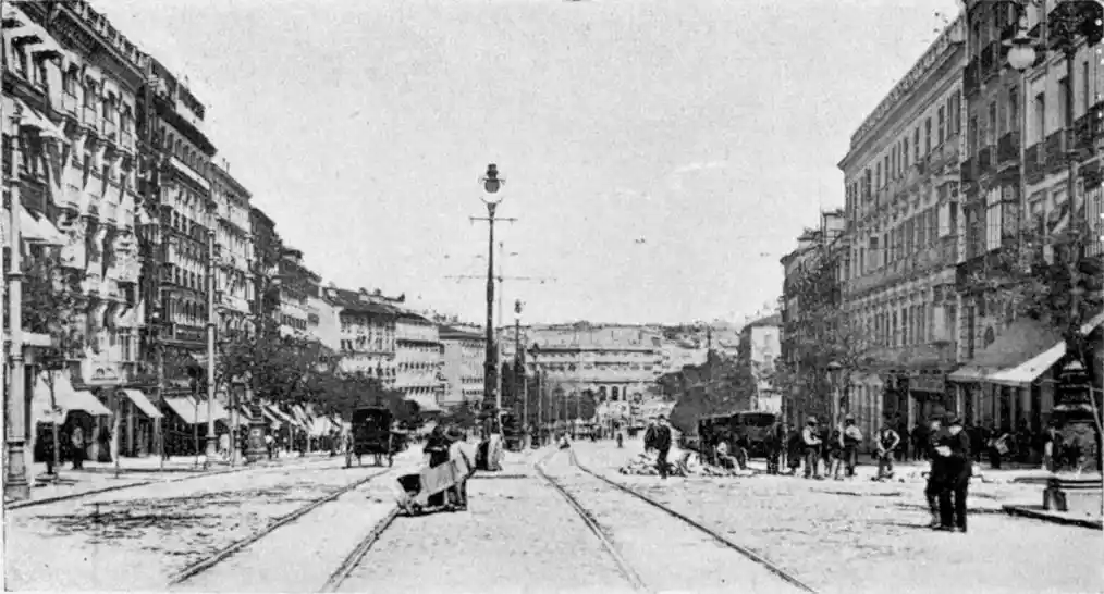 Despite the flattering and dignified official epithets that have been bestowed upon it, Madrid possesses many natural features which militate{vi} against its popularity as a residential centre; but, despite its isolated and elevated position and the treacherousness of its climate, the city has not deserved the strictures that have been passed upon it by captious and prejudiced critics. For Madrid is a city of broad thoroughfares, magnificent public buildings, and handsome houses; and, since it has been rescued from its geographical remoteness by being made the centre of the Spanish railway system, it has become one of the most accessible and prosperous capitals of Europe.