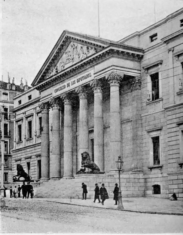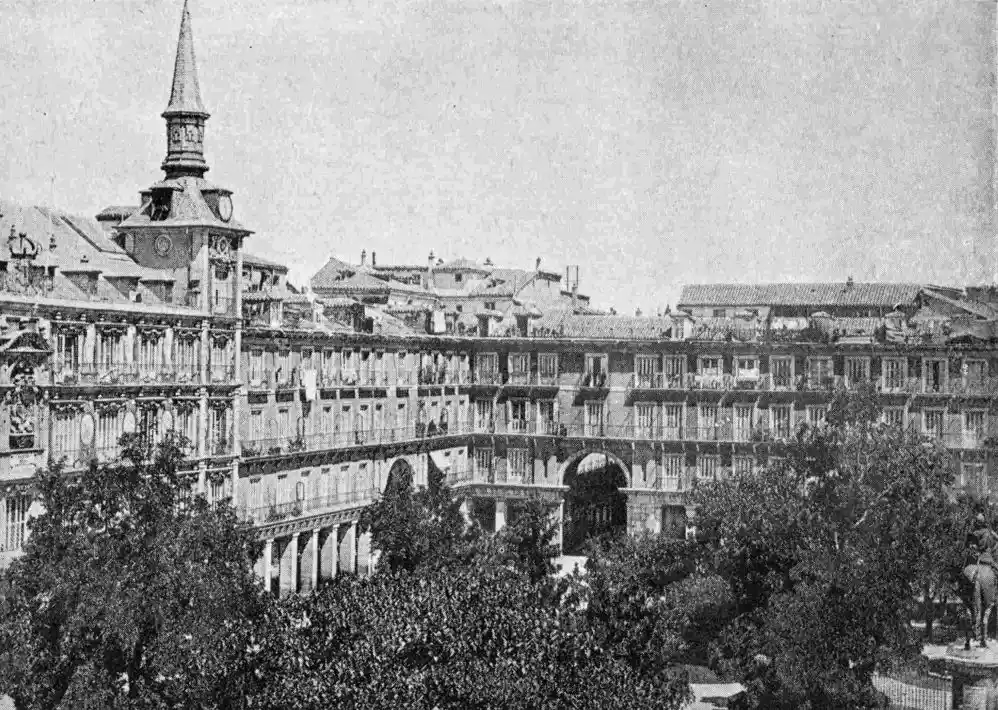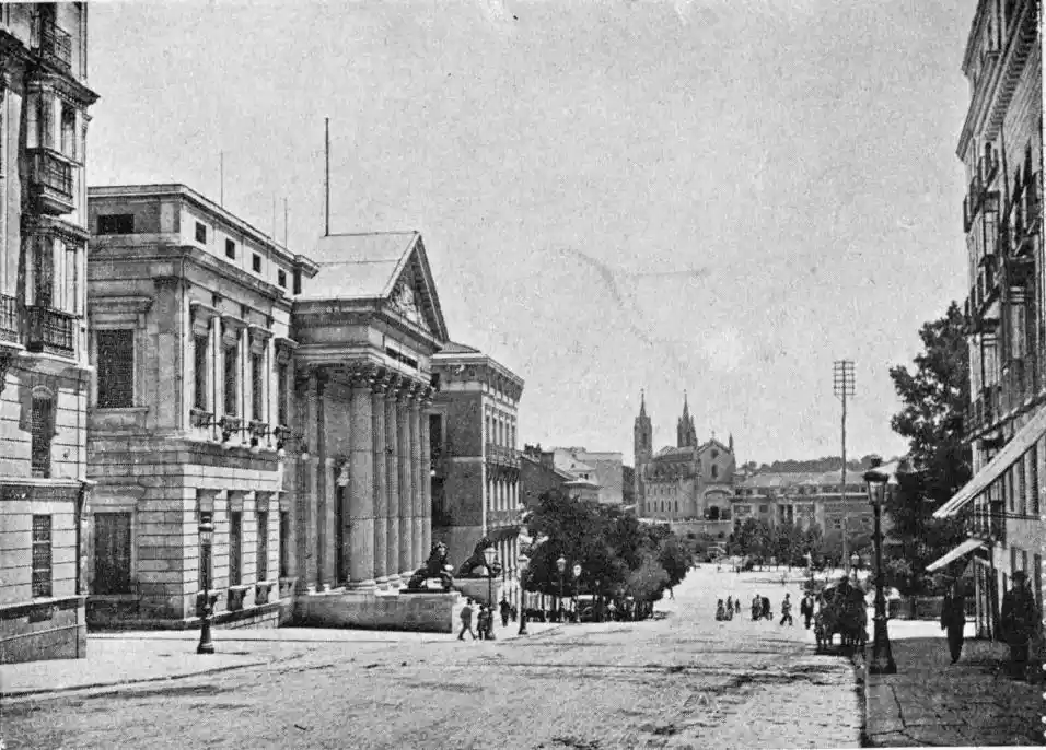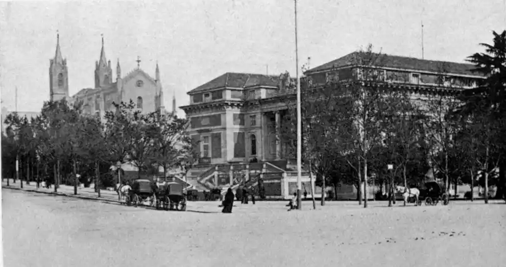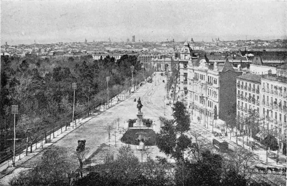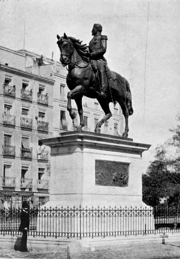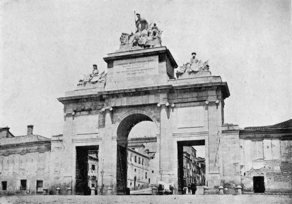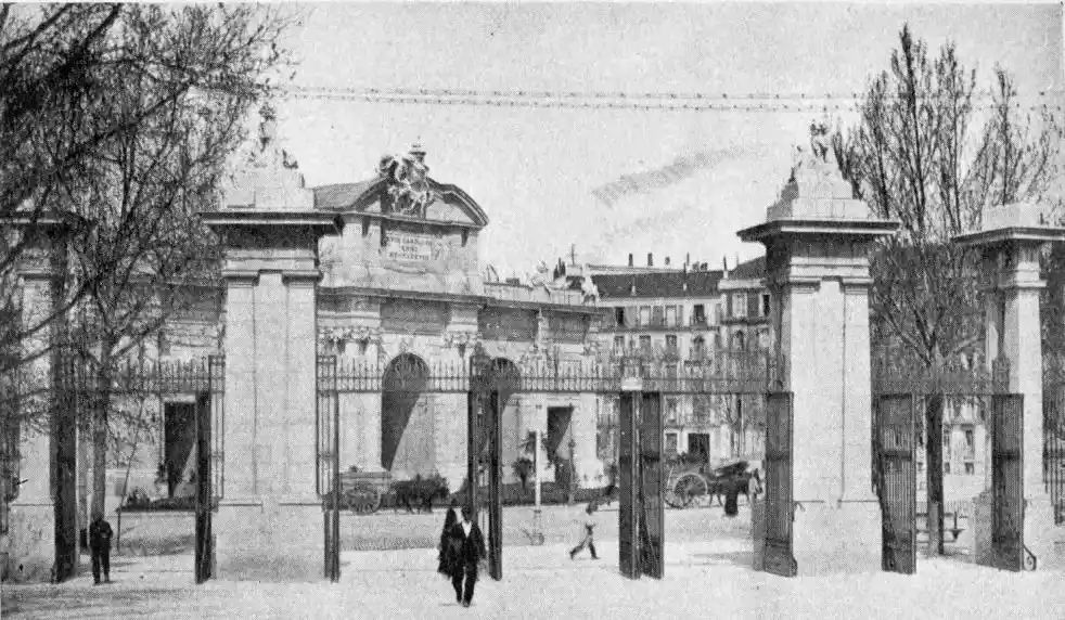 The history of Madrid becomes merged in that of the kingdom. The lead taken on the “Dos de Mayo,” 1808, when the Puerta del Sol and the adjoining streets were held with dauntless but futile courage by the people of Madrid against the French, was the signal for the uprising of the whole country against the intruder. The capital had well deserved its headship by its vindication of the nation’s dignity and independence. Every episode in its troubled history since that memorable day has been described vividly and inimitably by the great epic novelist, Galdós. Throughout the nineteenth century, the city had its full share in the vicissitudes and discord, which so happily terminated with the accession of King Alfonso XII. and the establishment of the strongest and most enlightened government Spain had known for centuries.
