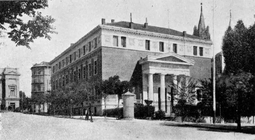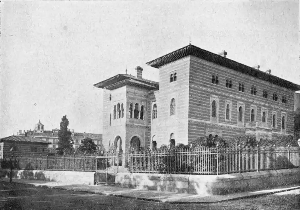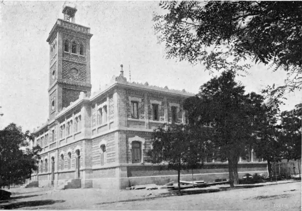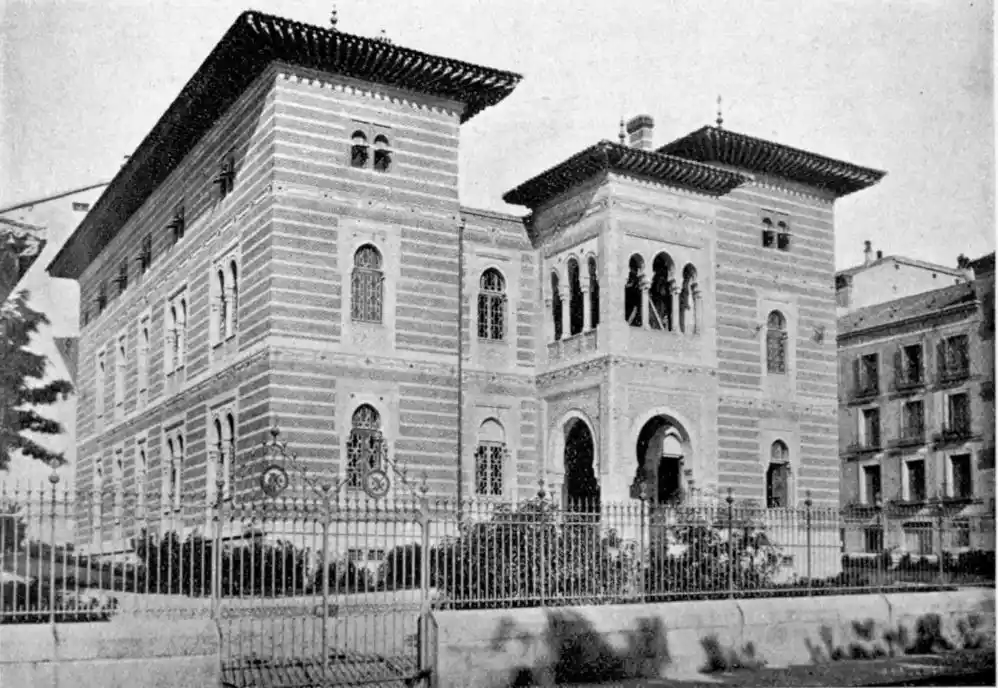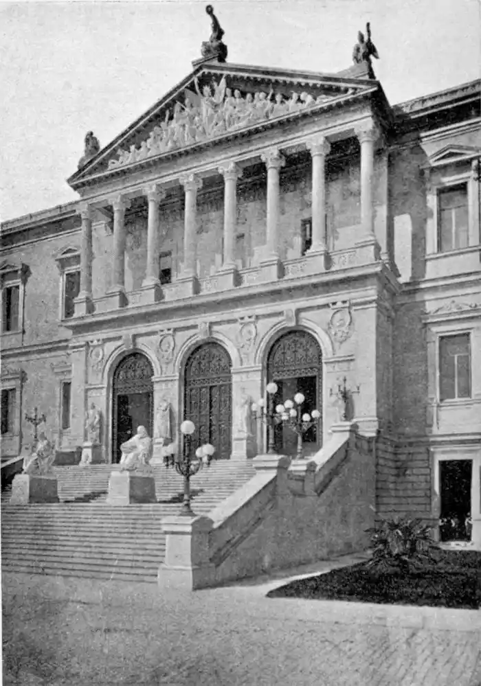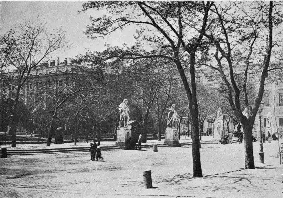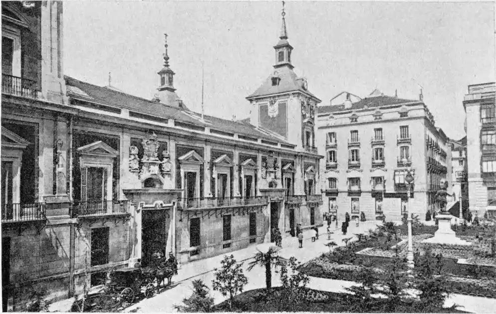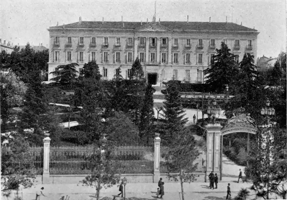 The history of Madrid becomes merged in that of the kingdom. The lead taken on the “Dos de Mayo,” 1808, when the Puerta del Sol and the adjoining streets were held with dauntless but futile courage by the people of Madrid against the French, was the signal for the uprising of the whole country against the intruder. The capital had well deserved its headship by its vindication of the nation’s dignity and independence. Every episode in its troubled history since that memorable day has been described vividly and inimitably by the great epic novelist, Galdós. Throughout the nineteenth century, the city had its full share in the vicissitudes and discord, which so happily terminated with the accession of King Alfonso XII. and the establishment of the strongest and most enlightened government Spain had known for centuries.