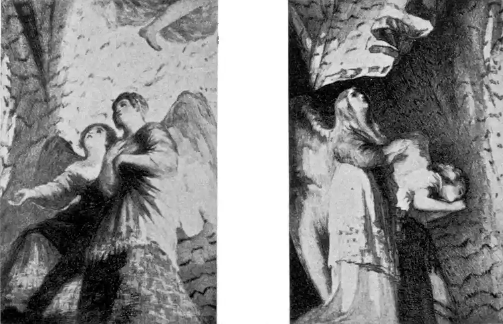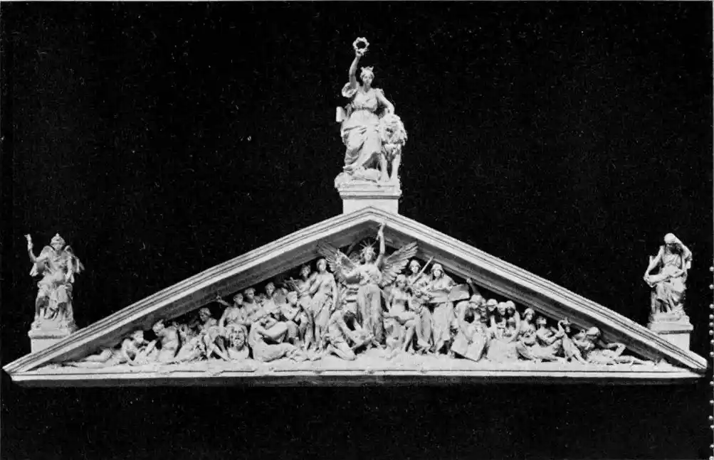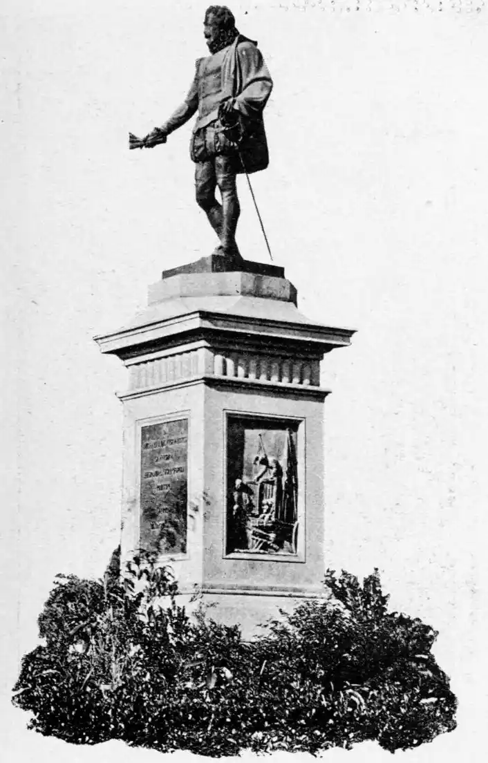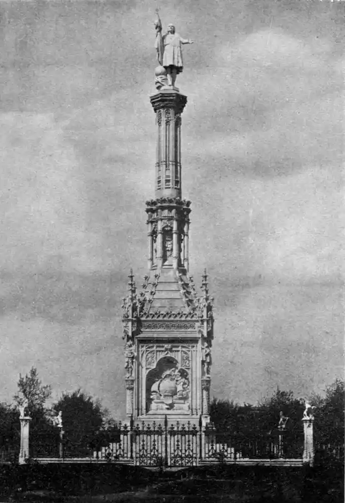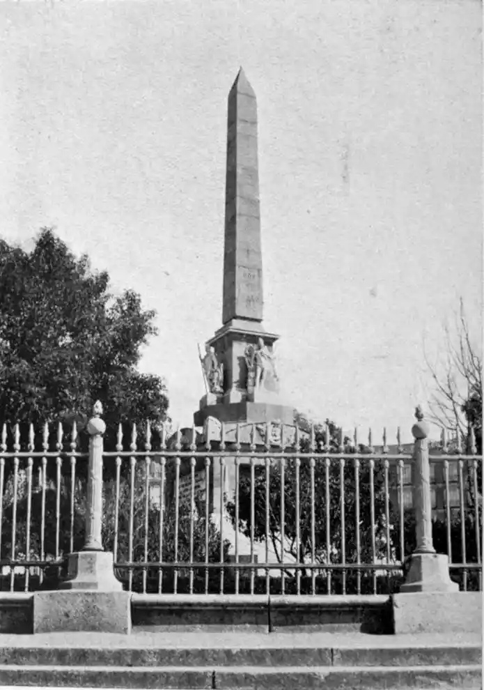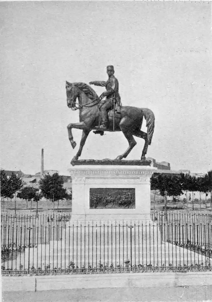 In several of the squares and promenades there are fountains, statues, and monuments. One of the finest of the monuments is that erected in memory of the heroes of the Dos de Mayo (the Second of May). It is of granite, in the shape of an obelisk, surrounded by symbolical figures. This monument was designed by Isidro Velazquez. A marble group in front of one of the façades of the Museo del Prado represents Daoiz and Velarde, the gallant artillery officers who fell on that occasion in defence of the throne and country.