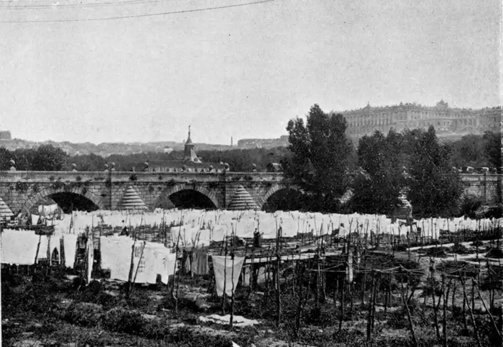 Rio and Cabarras, two Spanish historians, speak of the bad odours and the dirt of Madrid in the seventeenth century. This reproach was, however, removed in the time of Henry Swinburne, an intelligent traveller, who visited the city in 1776. “The appearance of Madrid,” writes Swinburne, “is grand and lively; noble streets, good houses, and excellent pavement, as clean as{3} it was once dirty.” In earlier days it was not thought necessary to wash the thoroughfares, because the purity of the air was an effective antidote to the evil of the filth and the smells. Rio, for example, advances the opinion that the invigorating mountain breezes are a sufficient purification.