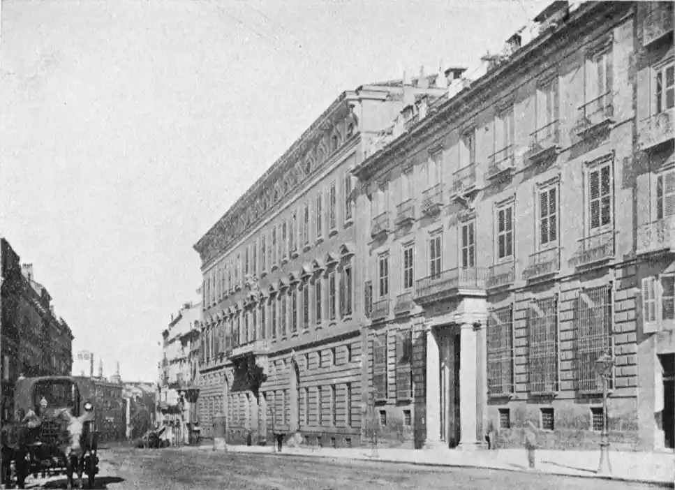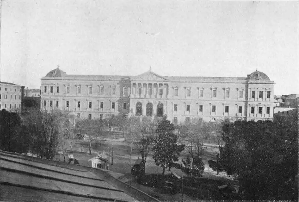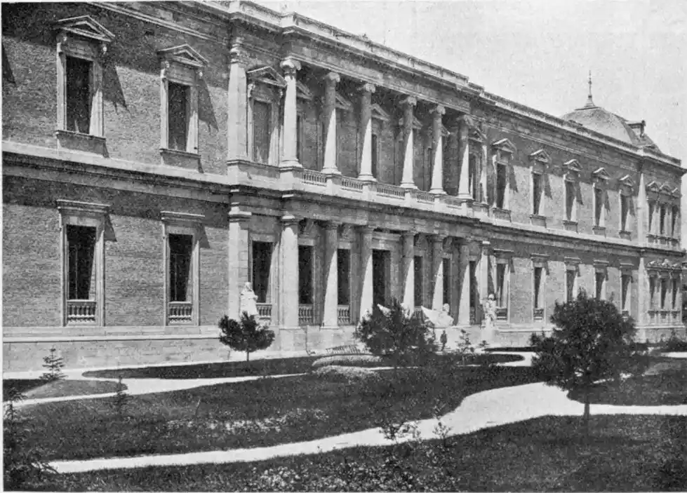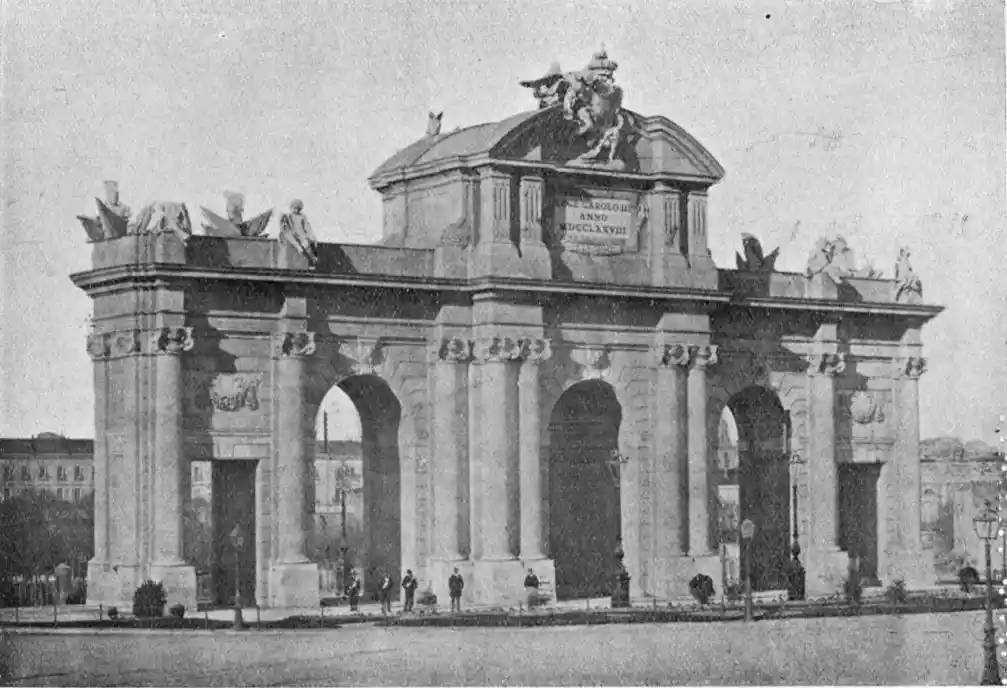 The people of Madrid have every reason to respect Charles III. To his initiation they owe the fine Customs’ House, the Prado Gallery, the General Hospital, the Alcalá Gateway, the Observatory, the Botanical Gardens, and the Natural History Library. These and other institutions and public buildings were established and erected during the reign of this excellent king.{29}