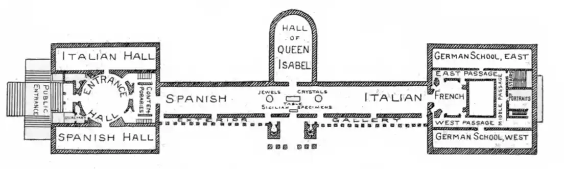 The Museum of Modern Art contains only a few paintings of importance, but there are some notable pictures by Fortuny, and a few pieces of modern sculpture. The great treasury of art, the Prado Gallery, is fully described in a separate volume of this series. It is the greatest glory of Madrid.