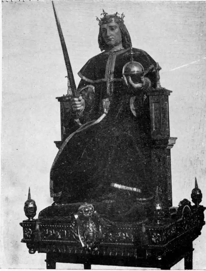 According to an old tradition, still accepted by a part of the populace of Madrid, an image of the Virgin of the Almudena, now in the possession of the nuns of the Sacramento Convent, was concealed by the zealous Christians, during the Moorish occupation, in a tower of the city wall. Three hundred years after the sacred image was discovered and restored to the Church. There is a similar legend concerning the sculpture of the Holy Mother found at about the same date.