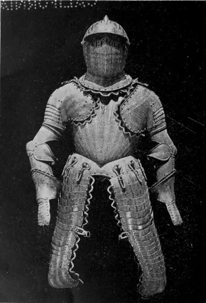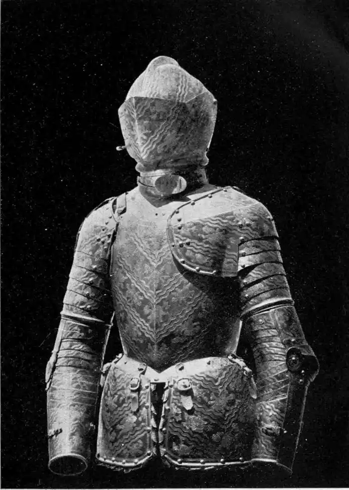 Although several valuable and voluminous catalogues of the Spanish Royal Armoury have, from time to time, been compiled, this “finest collection of armour in the world” has been subjected so often to the disturbing influences of fire, removal and rearrangement, that no hand catalogue of the Museum is available, and this book has been designed to serve both as a historical souvenir of the institution and a record of its treasures.