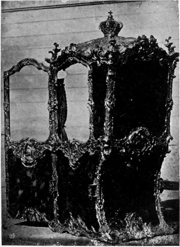 This writer says: “Almost all the points of etiquette observed at present by the persons who have access to the King and Queen and members of their family are merely formulas of pure courtesy, with which those who are aware of them comply, but which are not imposed at the Palace, nor even mentioned to those who do not know them. Taking the glove off the right hand in order to shake hands with the King; treating him as is his due; rising when he rises and not speaking to him except in reply to his questions; these are the chief points to be observed, and{36} which courtiers themselves sometimes forget without any notice being taken.”