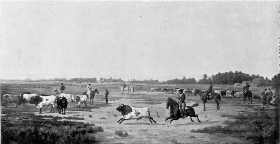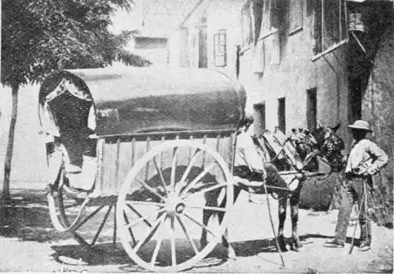 How antiquated, too, in British eyes is the ox-cart, heavy and ramshackle, with its squeaking wheels, and pair of bullocks under the carved wooden yoke! And the mule-teams—the gaunt, bony beasts, in Moorish-looking harness, with jangling bells around their necks, and the quaint devices of the clipper upon their coats, attended by swarthy men in knee-breeches and short jackets, with the peaked Castilian hat upon their cropped heads—these surely are of the days when Don Quixote rode on the great grey wastes of La Mancha, accompanied by his loyal Sancho.{9}