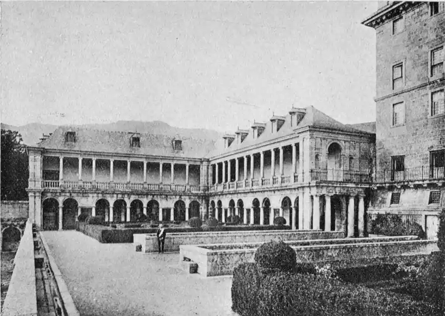 Spain is beyond question the richest country in the world in the number of its Royal Residences, and while few are without artistic importance, all are rich in historical memories. Thus from the Alcazar at Seville which is principally associated with Pedro the Cruel, to the Retiro, built to divert the attention of Philip IV. from his country’s decay; from the Escorial, in which the gloomy mind of Philip II. is perpetuated in stone, to La Granja, which speaks of the anguish and humiliation of Christina before Sergeant Garcia and his rude soldiery; from Aranjuez to Rio Frio, and from El Prado, darkened by the agony of a good king, to Miramar, to which a widowed Queen retired to mourn: all the history of Spain, from the splendid days of Charles V. to the present time, is crystallised in the Palaces that constitute the patrimony of the crown.