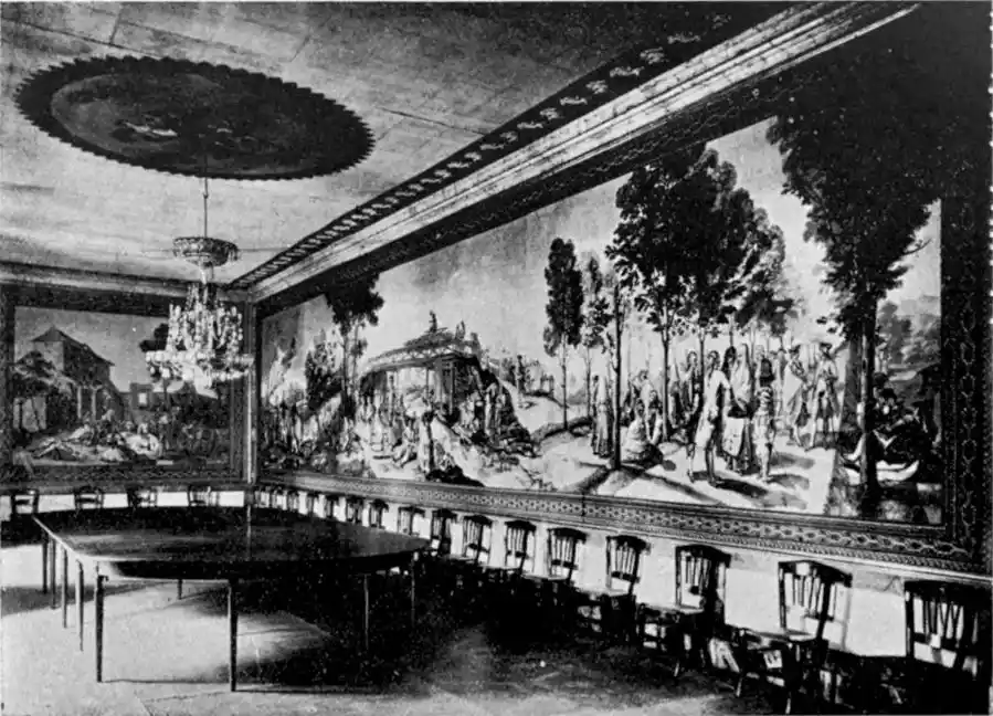 Foreign ministers are received in the Ante-chamber. There is an annual banquet for all the Diplomatic Corps. One of the court ceremonies is the conferring of the title of Grandee in the Ante-chamber.