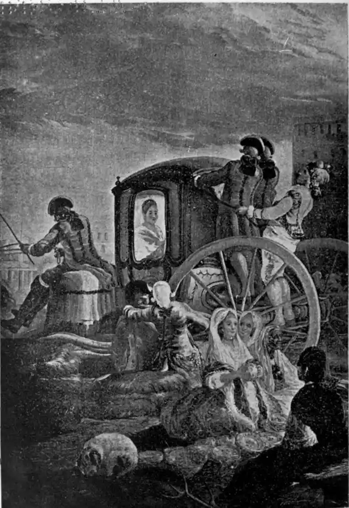 Madrid suffered from the general distress which spread over Spain at this period. In the surrounding villages the people were at the point of starvation, and the food supply in the city was seriously threatened. The outlook was so menacing that, in 1664, the President of Castile was sent with a military force to compel the farmers to send their produce to Madrid. In 1680 there was much destitution and suffering in the city, and the people rose and formed bands for the purpose of pillage. Beggars swarmed in Madrid, and desperate gangs of robbers prowled in the surrounding country.