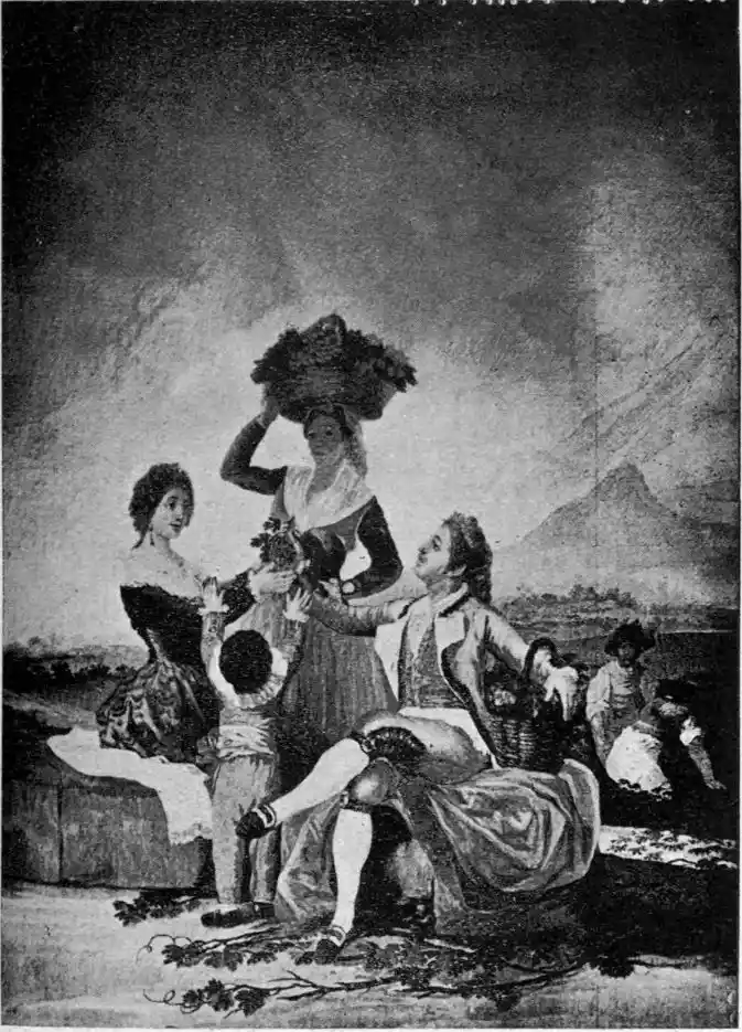 In an interesting book, “A Year in Spain,” written by a young American in 1831, there is a picture of the daily life of Madrid which may serve to illustrate the day’s round among the leisured in the city of to-day: “The first thing in the morning was to arrange and order everything for the day. Then each took the little higada of chocolate and panecillo, or small roll, of the delightful bread of Madrid. This meal is not taken at a table but sitting, standing, or walking from room to room, and not unfrequently in bed. This over, each went to his peculiar occupations; the old woman, with her Diarios and Gacetas, to open her reading-room in the entry; Florencia to ply her needle; and Don Valentin to play tinker overhead, having first taken out his flint and steel, and cigar and paper, to prepare his brief cigarillo, which he would smoke, with a sigh between each puff, after those days of liberty when a cigar cost two cuartos instead of four. Towards noon he would roll himself in his capa parda—cloak of brown—and go down into the Puerta del Sol, to learn the thousand rumours which there find daily circulation. If it were a feast day, the Mass being over, he would go with{12} his daughter to the Prado. At two the family took its mid-day meal, consisting, beside some simple dessert, of soup and puchero, well-seasoned with pepper, saffron, and garlic. If it had been summer, the siesta would have passed in sleep; but it being winter, Don Valentin took advantage of the short-lived heat to wander forth with a friend, and in the evening went to his tertulia, or friendly reunion. In summer, one, or even two o’clock, is the hour of retiring; but in winter it is eleven. Always the last thing before going to bed was to take a supper of stewed meat and tomatoes, prepared in oil, to sleep upon.”