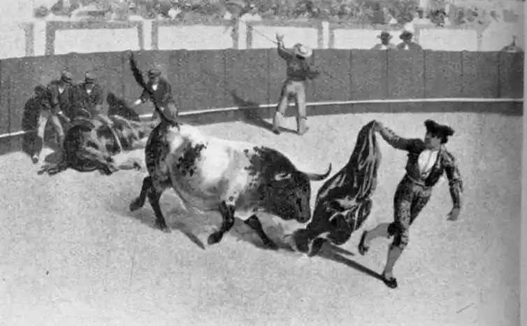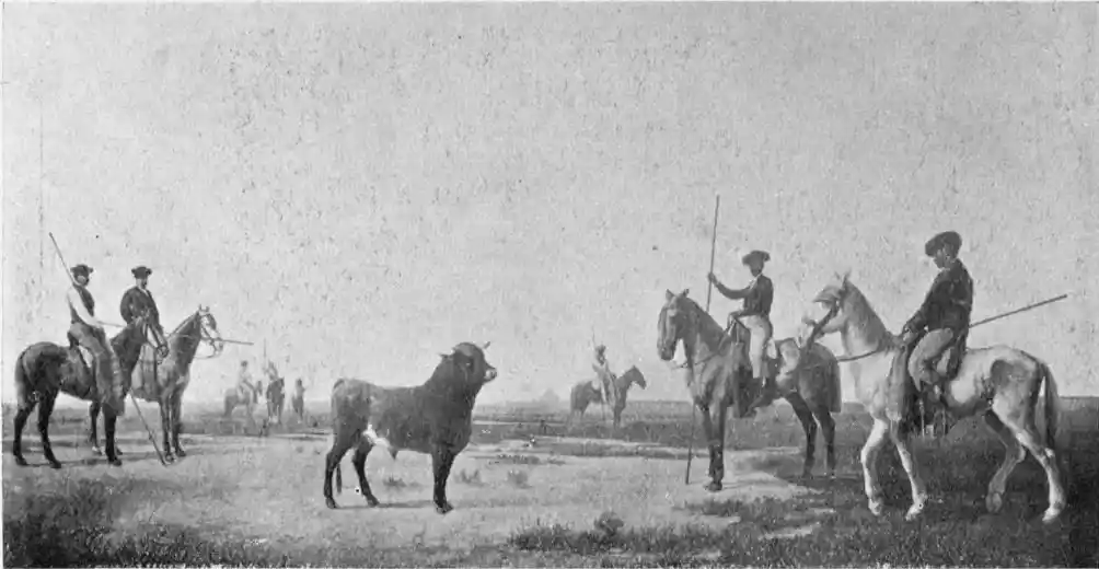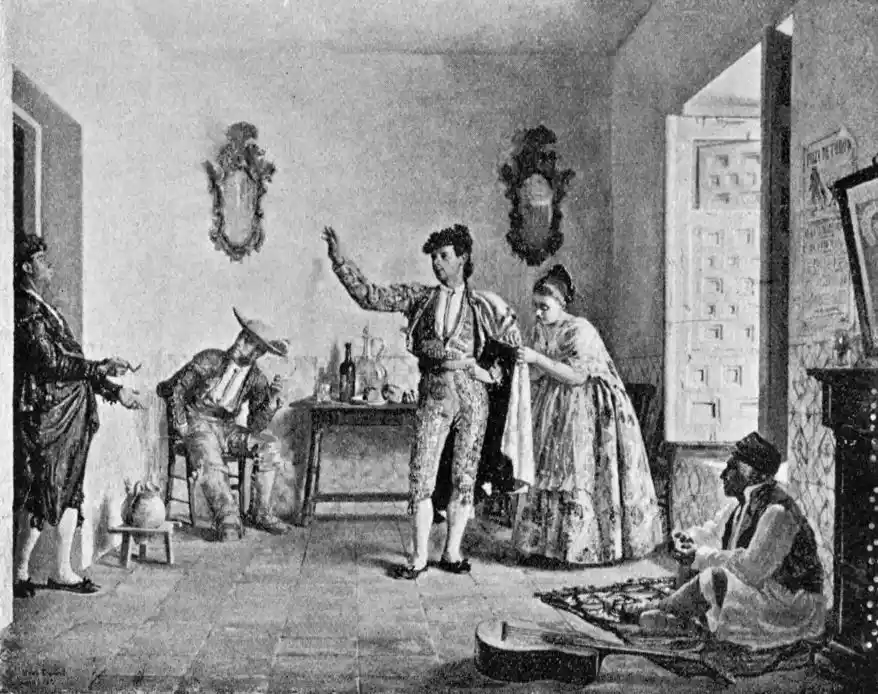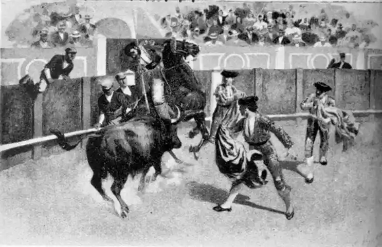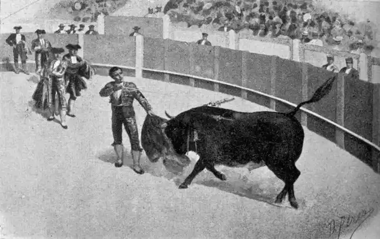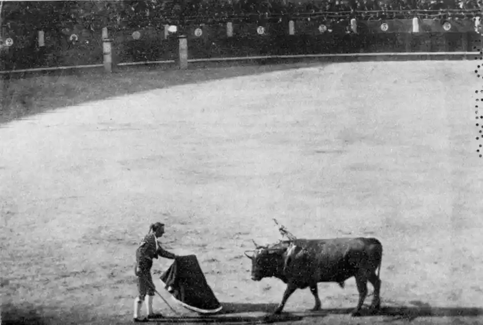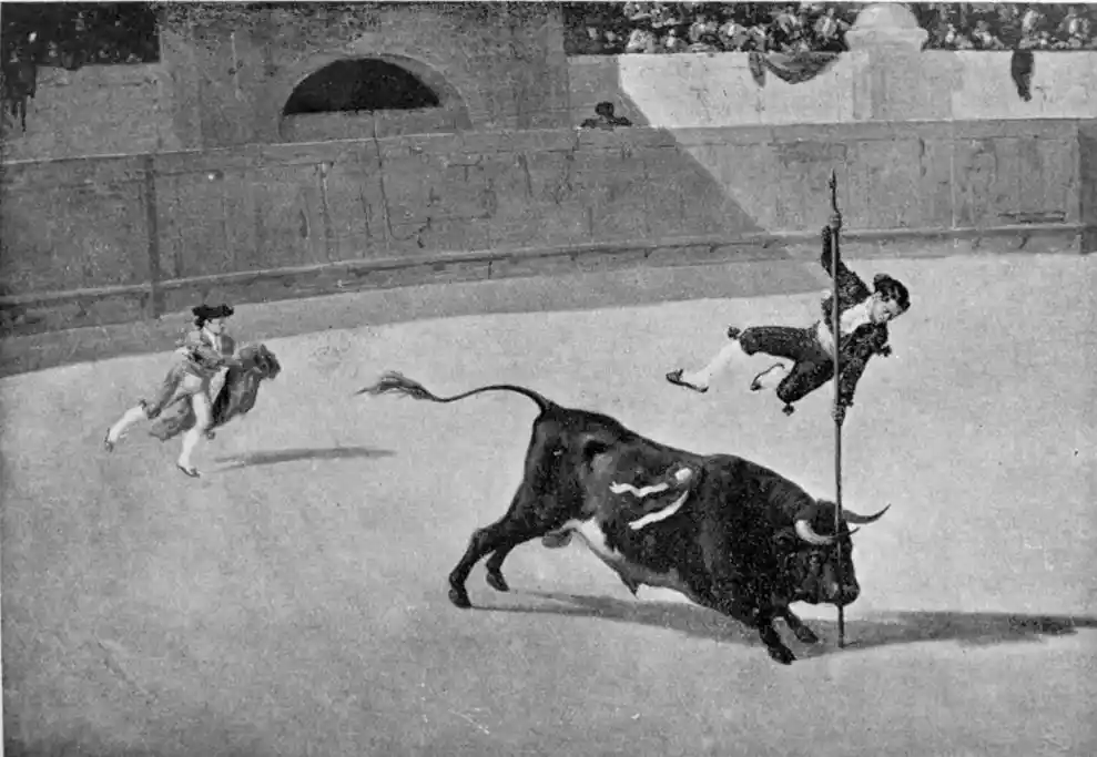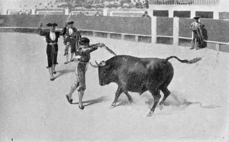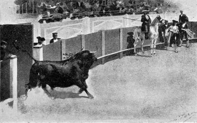 There is the Madrid of the casinos, some intellectual, others merely social or sporting. The city has its coteries of ardent politicians, military men, financiers, reformers, freethinkers, revolutionaries, and its societies of the scientific, learned, and artistic. There is no specific character which one can point to as typical of Madrid. One passion is, however, manifest throughout all classes—the love of bull-fighting. Seville is the school of the torero; Madrid is the scene of his valour in the arena. The bull-fighter is the idol of the populace. In the cafés of the Puerta del Sol, or in the ring of the Plaza de Toros, his figure{16} is one that arouses the deepest interest and warmest admiration. An eminent jockey in England has his host of admirers, but he cannot command that universal respect which is accorded to the espada in Spain. The great bull-fighter is the pet of Madrid society, the demi-god of the populace, the model of the “sports” of the city.
