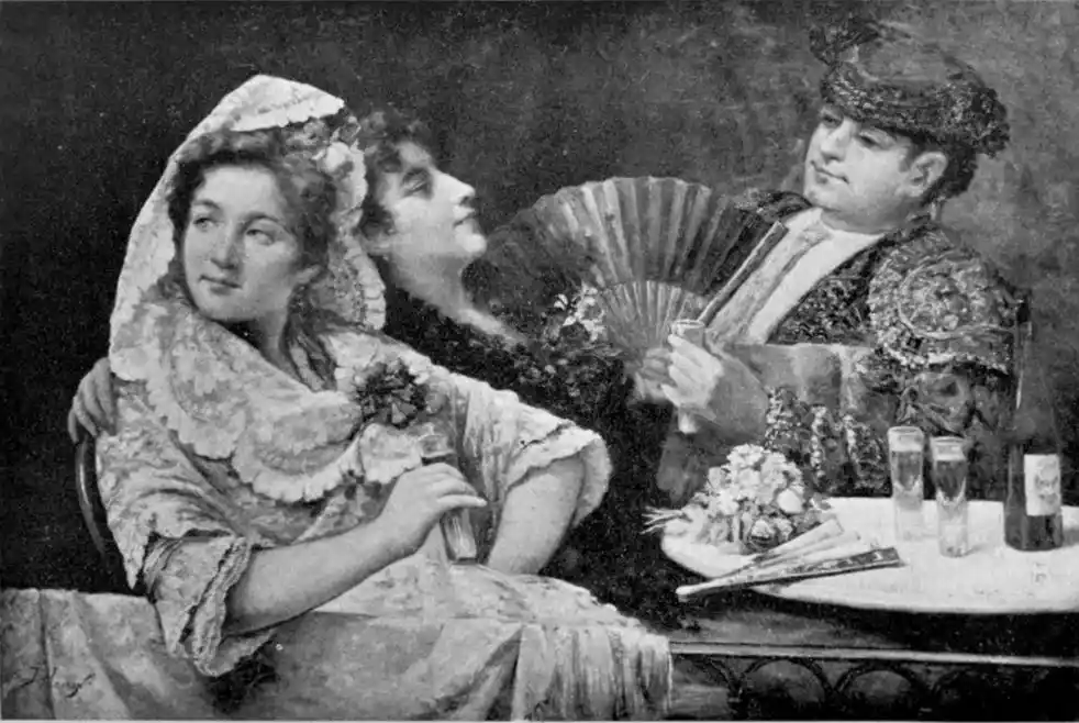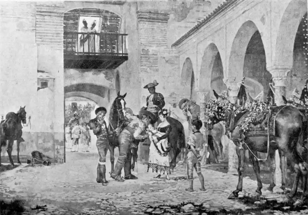 And yet there is trading and speculating in the city, and merchants contrive to build up businesses, and shopkeepers thrive, and occasionally make large fortunes. But the aim is rather to enjoy life than to “push” and “hustle” in the hope of accumulating dollars by middle age. In fine, the art of contented enjoyment is discreetly cultivated in Madrid by all classes. Valdés, in his novel “Froth,” tells us how the “smart set” and the fashionable idlers of the city pass their days, and the picture is not unlike the life of our own West End society. But sentiment is a luxury for which the rich are prepared to pay a high price. You may see beautifully furnished houses deserted and allowed to fall into ruin by the owner, because his loved wife or child drew their last breath there, perhaps years ago.