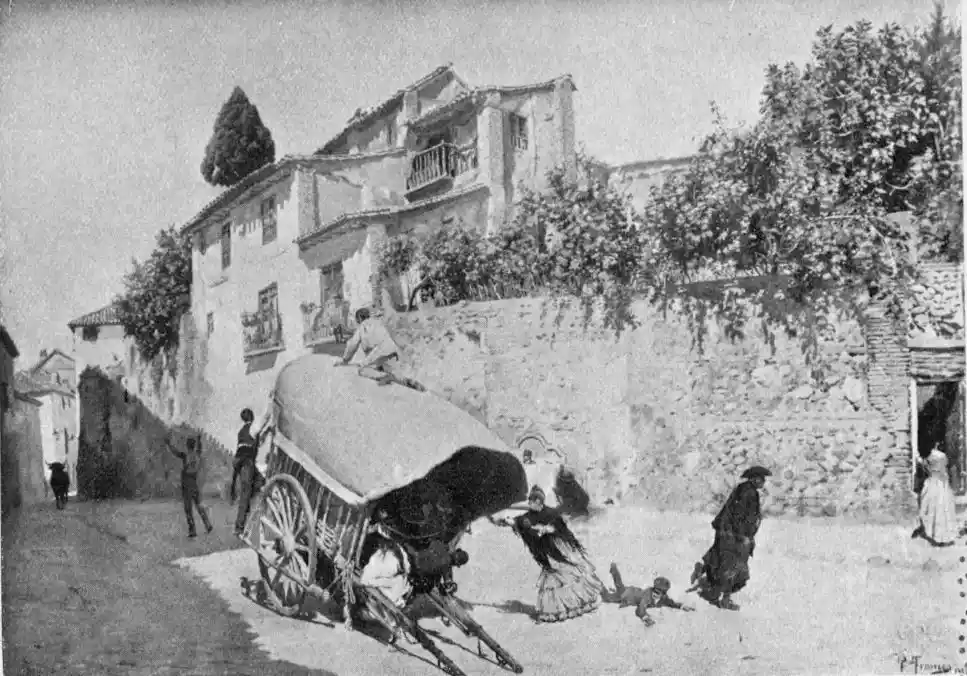 Few towns in Europe are situated amid so many natural hindrances to development as Madrid. It stands south and east of the bleak mountains of central Spain, upon one of many exposed and almost treeless uplands, where the winds of winter and early spring sting and bite, and the{2} sun in summer sheds pitiless heat, which dries up the blood and disposes to languor. So fickle is the climate of this lofty region that, even in the height of August, it is never quite safe to discard the capa after sundown, for, during the hottest day, a sinister and gelid breath may assail one at the street corner with a menace of chill to the lungs. Yet Madrid is not unhealthy. It is dry, invigorating, swept by mountain breezes, bathed for long periods in brightest sunlight, and free from the contamination and depression of smoke. With proper provision against the variations in temperature, one may enjoy a full measure of health and live to an advanced age in this city of the hills. The more dangerous kinds of fever are uncommon in Madrid; the chief risk to health is in the sudden keen air that brings a shiver when the body has been scorched by the sun, and one turns to seek the shady side of the street.