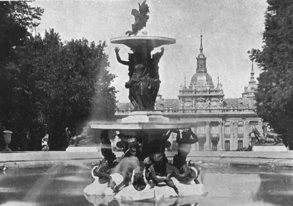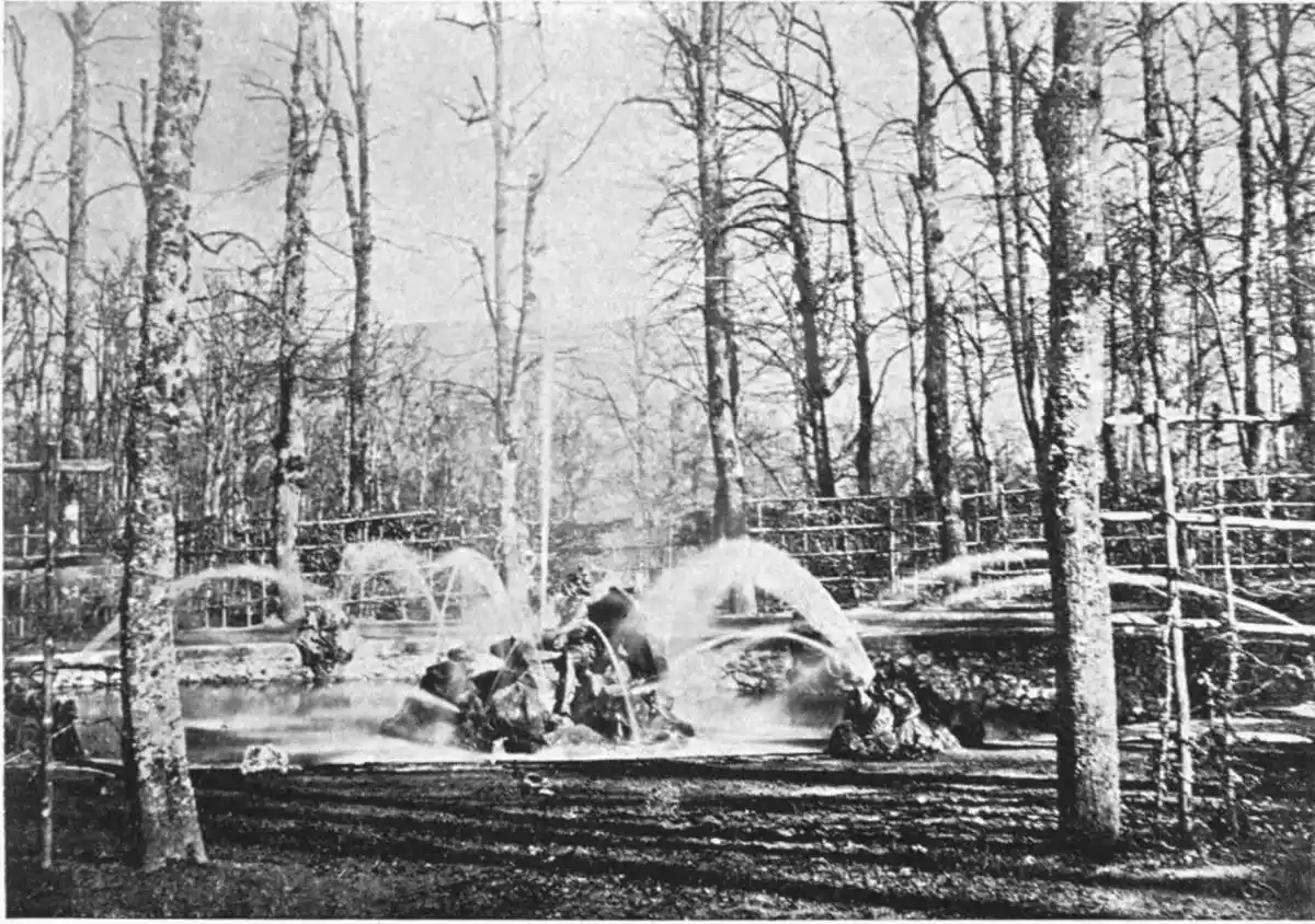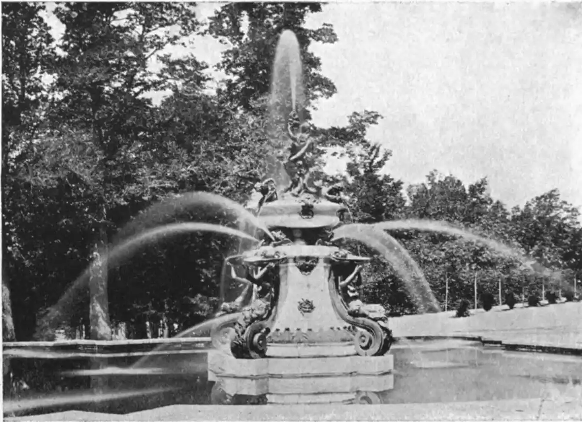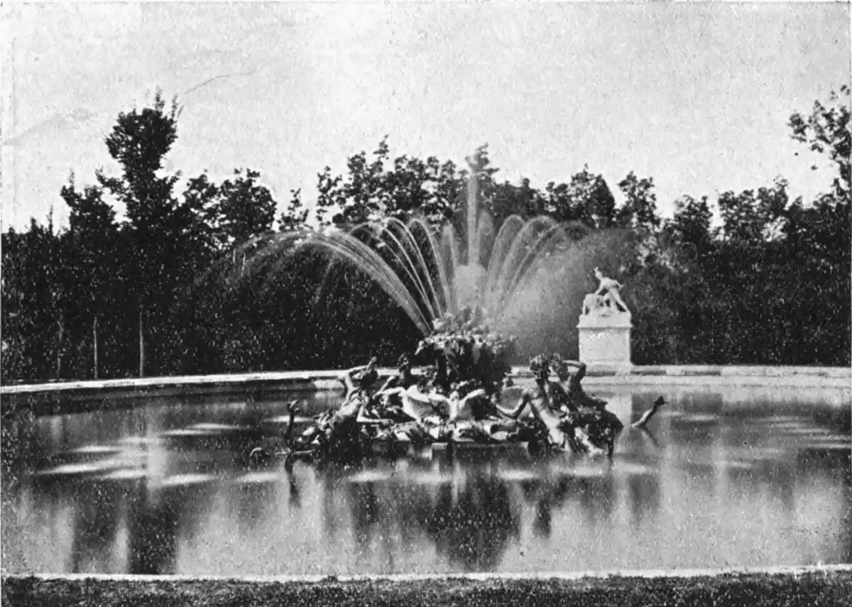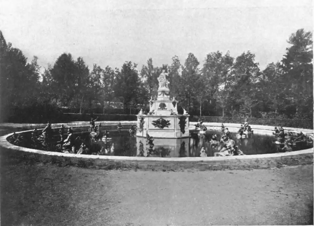 It was on the rocky eminence of La Granja, overlooking Segovia’s brown towers and the distant Roman aqueduct, that Philip V. gave orders for an estate to be laid out that should be reminiscent of his beloved Versailles. The fact that no suitable level existed on the sharp mountain slope for the erection of a palace mattered nothing. The level must be made. Tens of thousands of tons of rock were blasted away; tens of thousands of tons of soil were brought up from the sunny plain below; and on the astonishing ledge thus torn out of the sides of the mountain, the Royal Palace arose in a garden of the most beautiful flowers and adorned with the choicest fountains in all Spain.
