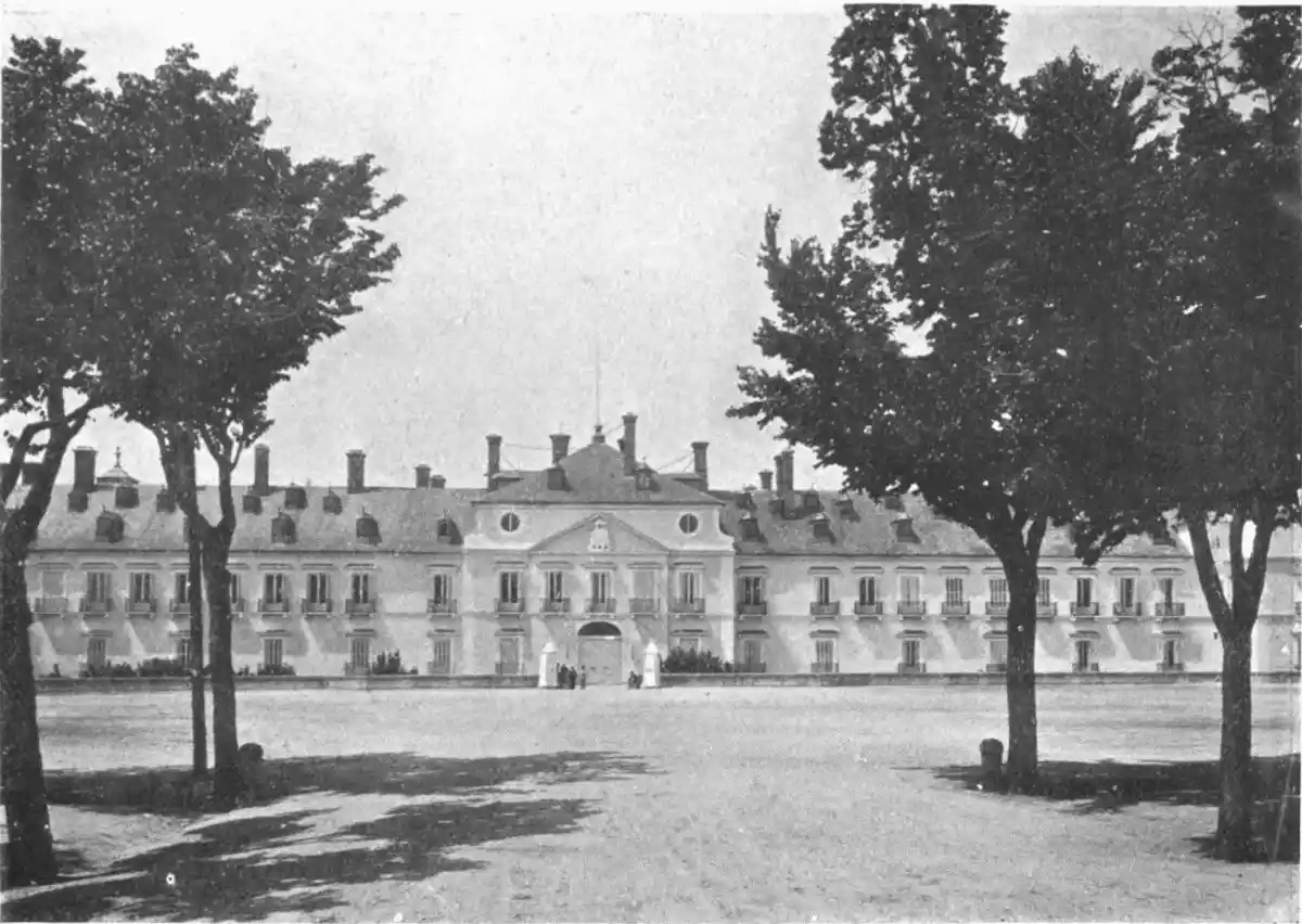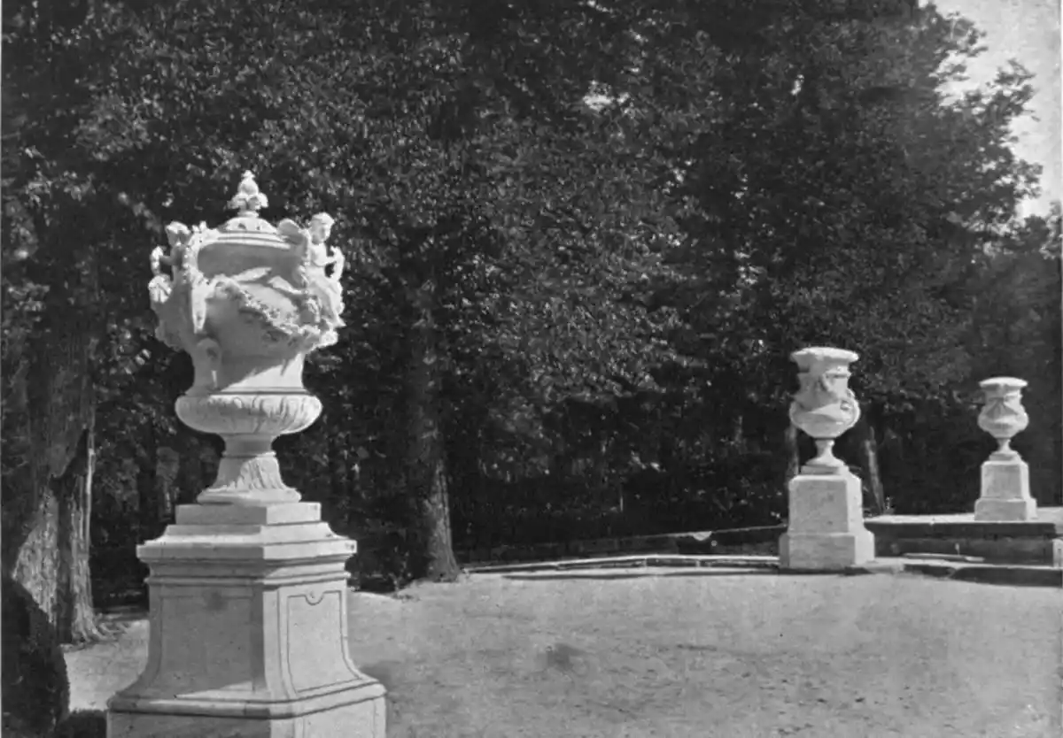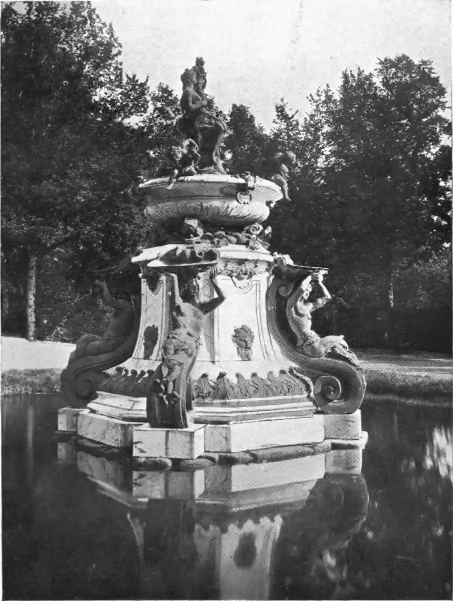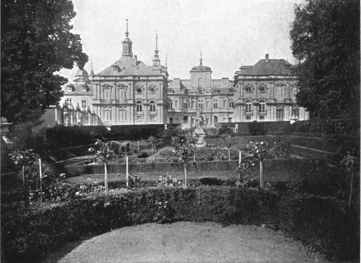 The Bourbon Philip V., like his Austrian predecessor Philip II., conceived a craving for solitude, and while hunting at Valsain in 1720 he observed La Granja (the Grange, or farmhouse) of the Segovian monks of El Parral, and coveted it for a place of retirement. Philip’s nature had undergone a great change since he entered Spain, a handsome, resolute soldier, in 1701. His first wife, Marie Louise of Savoy, had been at his side during the troublous, early days of his reign, and in 1714, when Spain was at peace for the first time since he assumed the crown, his wife died. Under the stress of warlike excitement and the gentle, sustaining sympathy and influence of{21} Marie Louise, Philip had proved himself a prince of high spirit, determination, and resource, but under the domination of the ambitious, intriguing, masterful Elizabeth he lost all initiative and sunk into a moody inaction, which subsequently developed into lethargic insanity. It has been said that, personally, Philip did little good for Spain, and it must be admitted that, when it was most incumbent on him to play the man, he weakly involved the country in prolonged wars at the bidding of his wife. If the national revenue increased enormously during his reign, the expenditure was more than proportionately increased in the construction of the three palaces he left to Spain and in the extravagant collection of works of art with which he furnished them. From Versailles he had brought the love of letters which prompted him to found the Royal Spanish Academy, the National Library, the Royal Academy of History, and the School of Nobles. His training at the Court of Louis XIV. was also evident in the change in the social customs of the country. The nobles adopted French fashions in costumes and cookery, they affected French furniture and French books. The king, who had thus stamped his personal tastes upon the Court, saw his opportunity of further gratifying his{22} French sympathies by creating a ‘Spanish Versailles’ and a ‘Spanish Fontainebleau.’