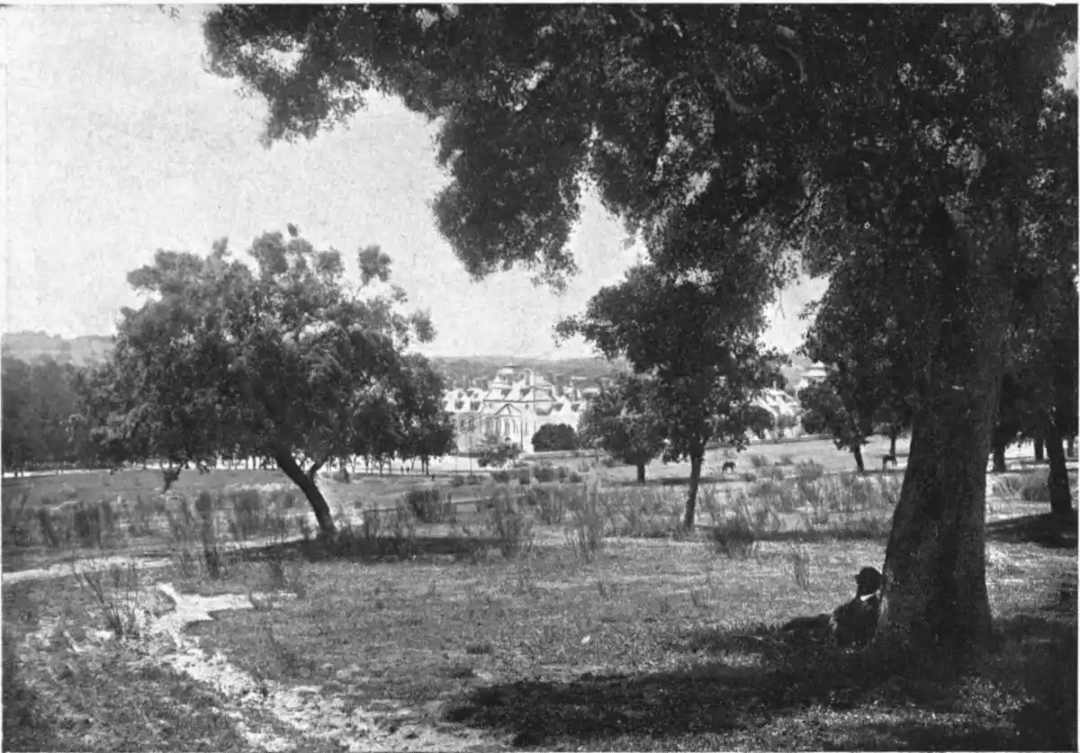 To the Royal Patrimony also belongs the parish church and the Capuchin convent of Santo Cristo, situated on the left bank of the river, and hither, on St. Eugene’s day, the people of Madrid journey in crowds. On other feast days, also, the beautifully wooded slopes and shady avenues of El Pardo attract thousands of visitors from the city. It would be difficult to find anywhere in Europe, at the very doors of the capital, such beautiful rustic scenery as that enclosed in this royal estate.