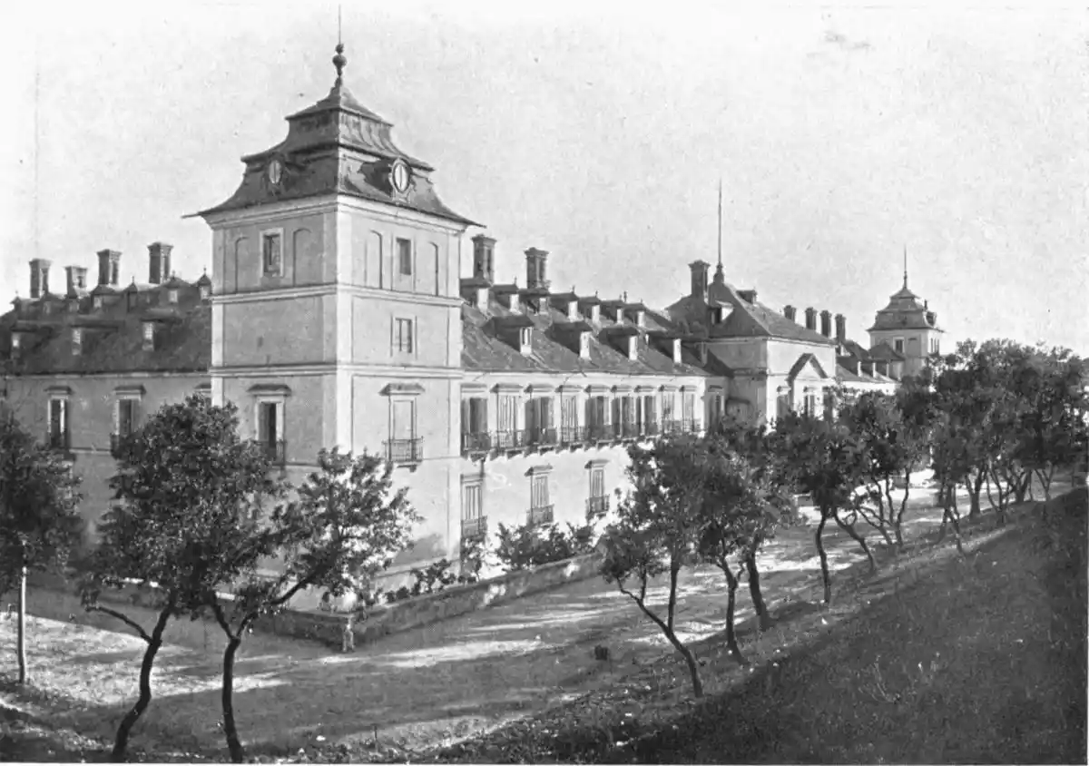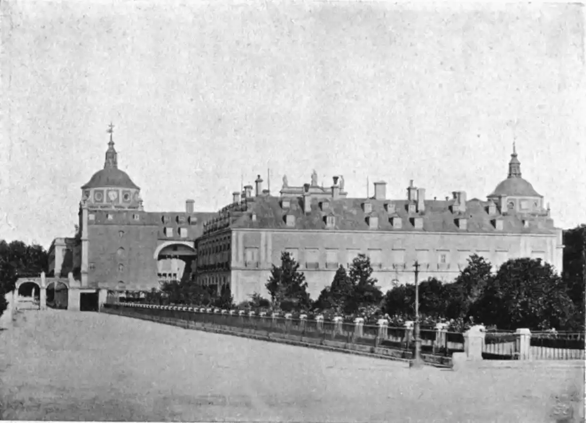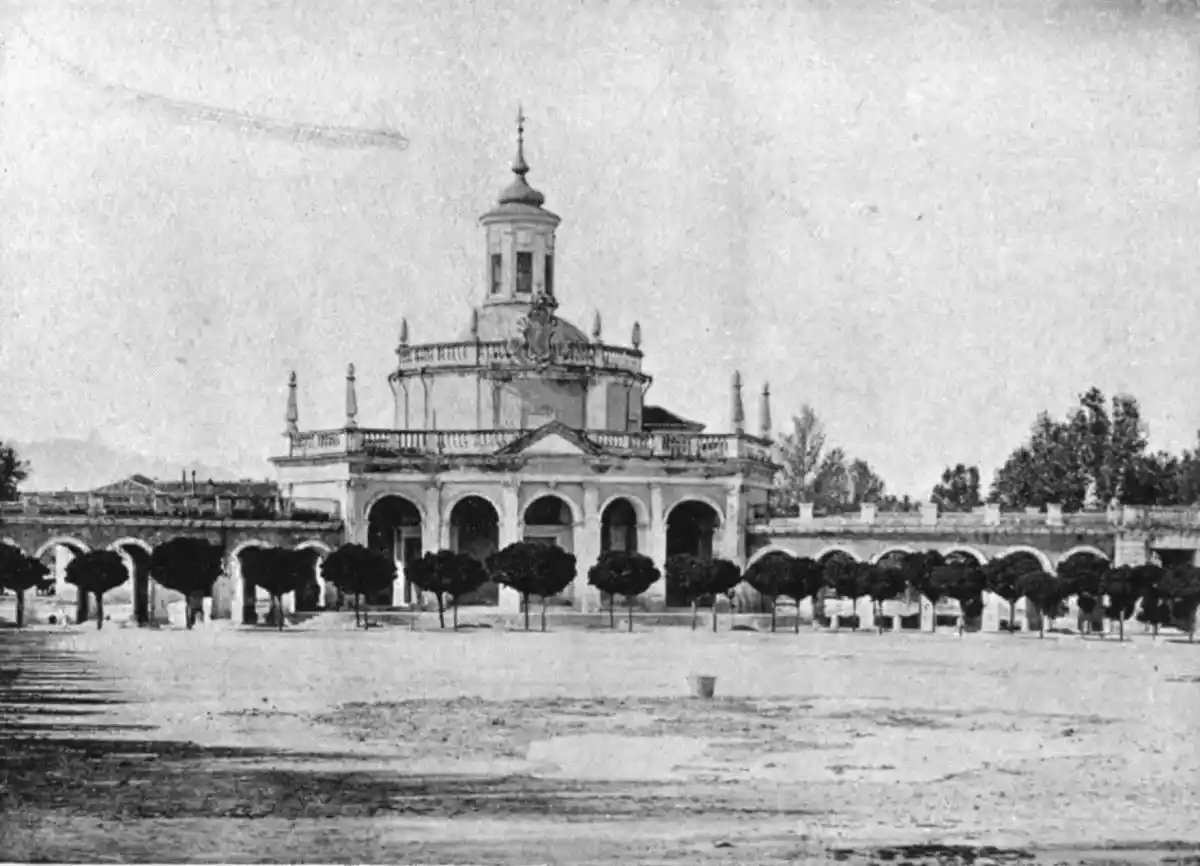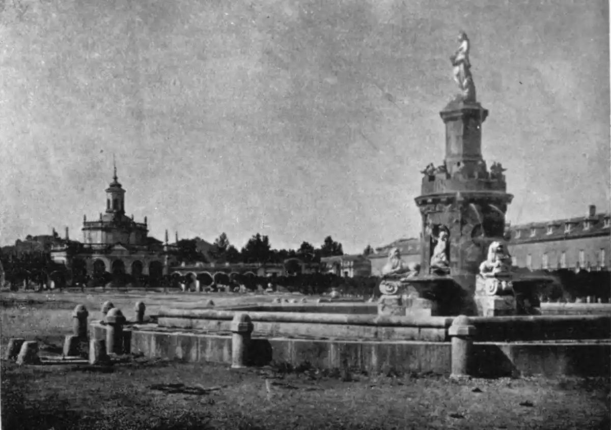 The mob still overran the streets of Aranjuez, and swarmed around the royal palace in which Charles IV. signed the decree handing the crown of Spain to Ferdinand. A few days later he withdrew his abdication privately at the instigation of General Monthion, Murat’s chief of the staff, and shortly afterwards left Aranjuez for the Escorial, from whence, on the 25th April following, he set out for Bayonne, to lay the crown at the feet of the Emperor of the French. The king died at Rome in 1819; Ferdinand, having spent six years at Valençay, where he was virtually a prisoner of the French, was restored to the throne of Spain. During the{55} nineteen years of his reign Ferdinand VII. and the coarse, ignorant vulgarians who composed the camarilla by which he surrounded himself, spent much of their time at Aranjuez. Here the vast conspiracy was hatched against the Constitution, which led to the battle between the militia and the citizens in 1822; and here the worthless monarch intrigued until his death to re-establish absolutism, and restore the old rotten order of things which the nation had shed its best blood to wipe out.
