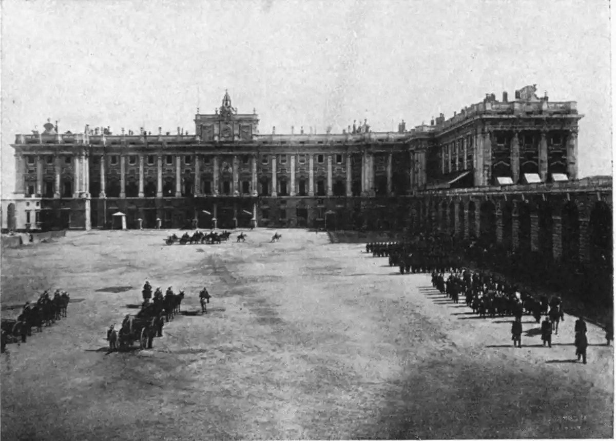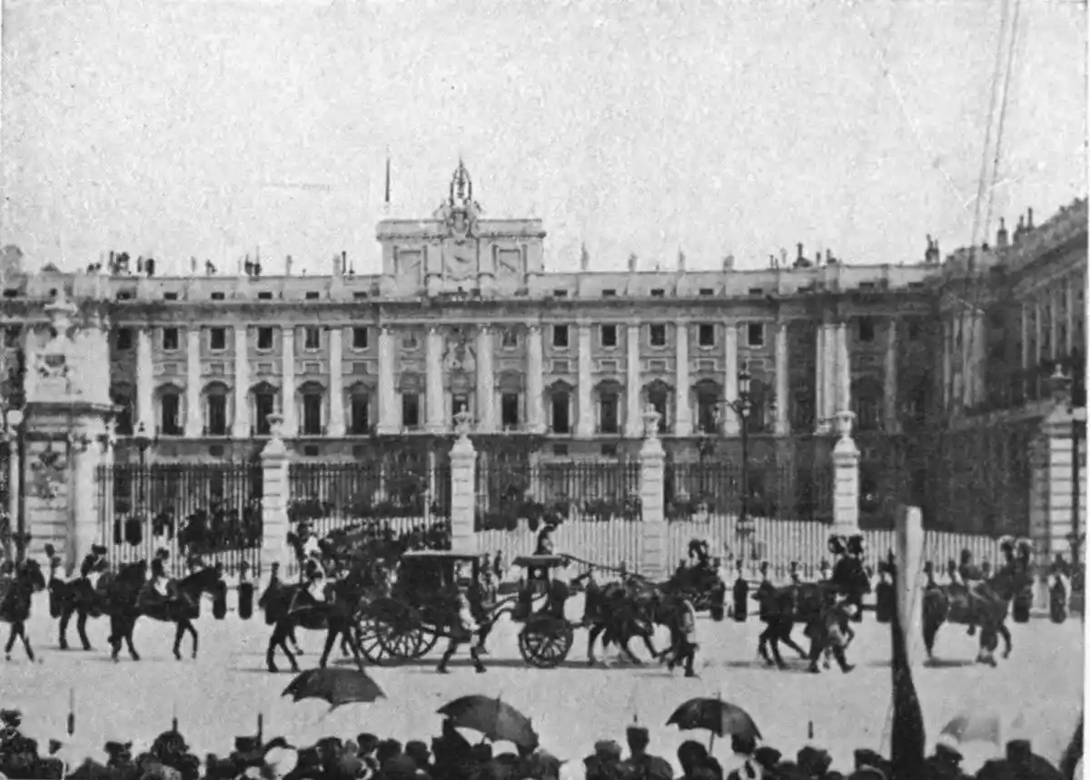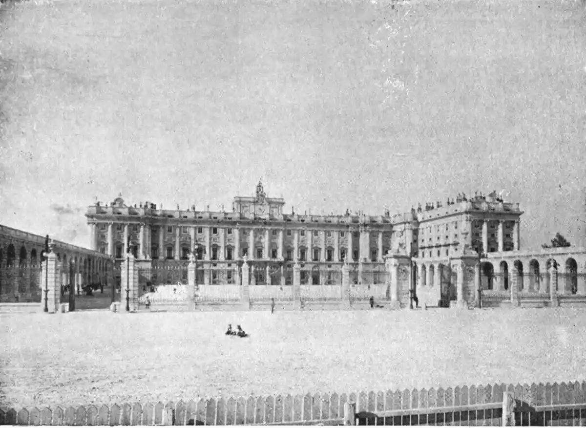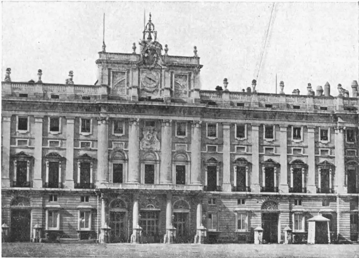 After a hopeless struggle to reduce Spanish affairs into something like order, Amadeo of Savoy issued from the Royal Palace his valedictory address to his people, and on the following day, 12th February 1873, he left Madrid, as he had entered it, a chevalier sans peur et sans reproche. In the same palace Alfonso XIII. was born and baptized, from the palace he set out to the church of San Jeronimo to be married to Victoria Eugénie of Battenberg, and here was born and baptized the Prince of the Asturias, the heir to the throne of Spain.