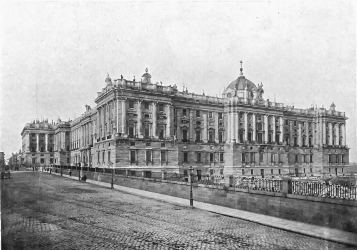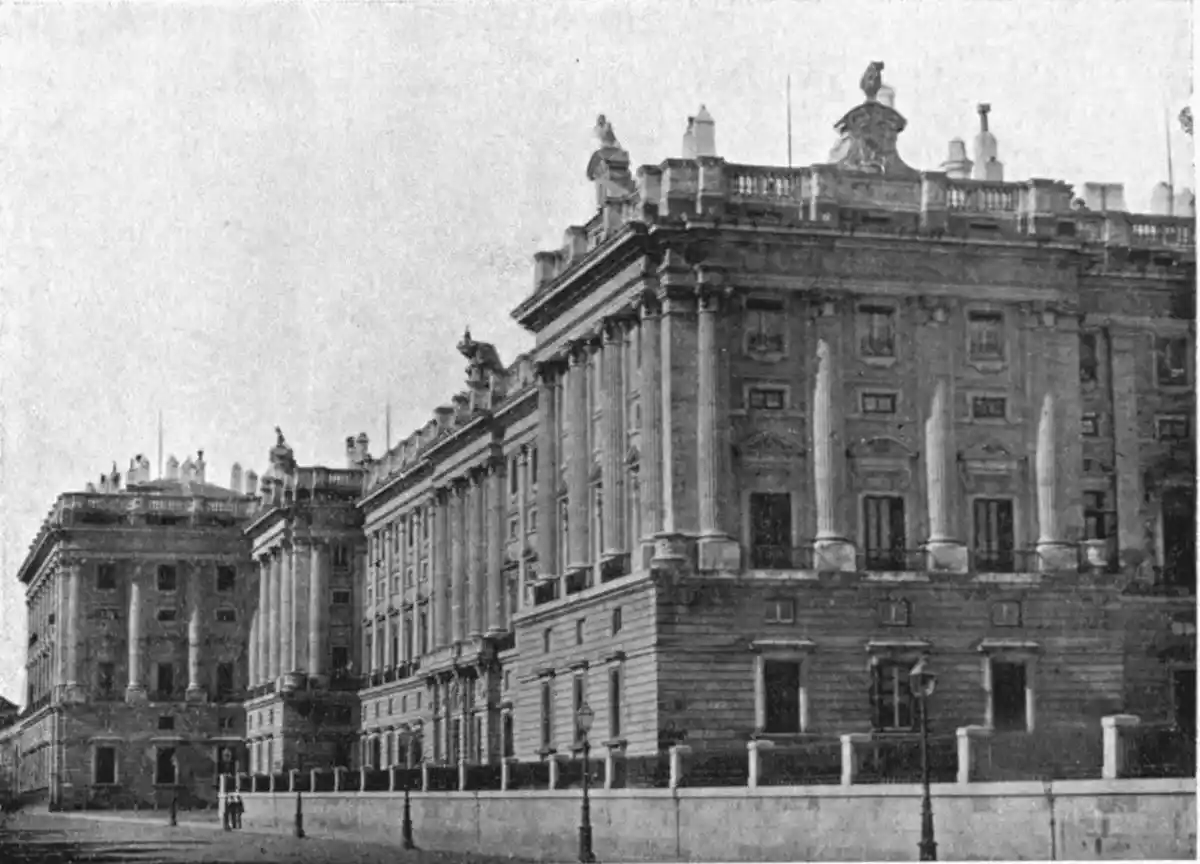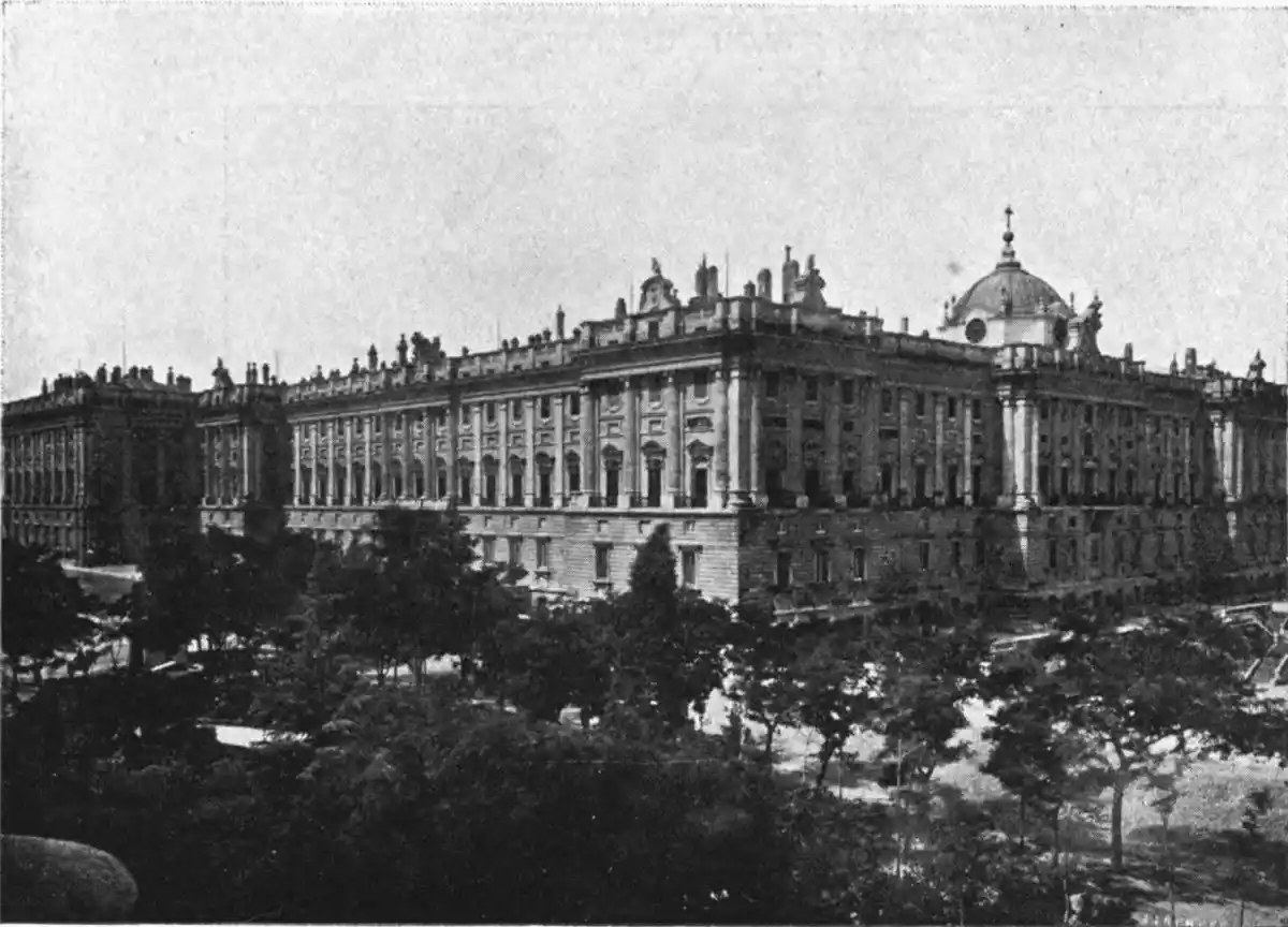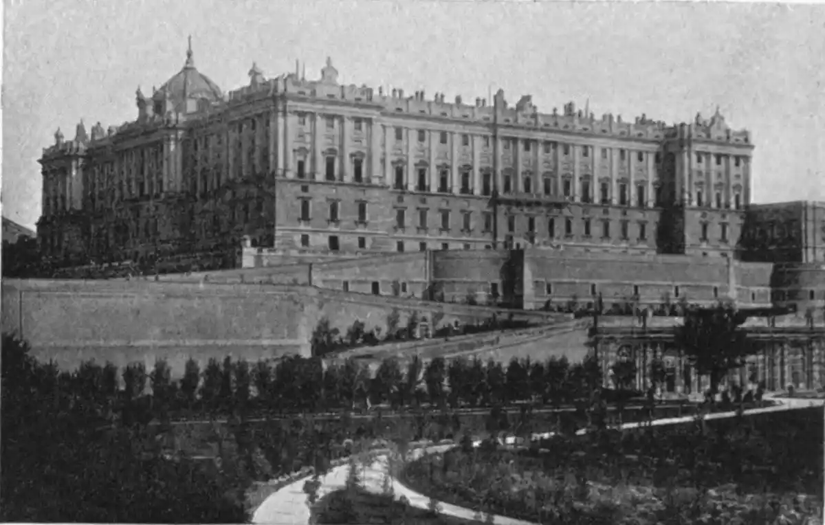 After a hopeless struggle to reduce Spanish affairs into something like order, Amadeo of Savoy issued from the Royal Palace his valedictory address to his people, and on the following day, 12th February 1873, he left Madrid, as he had entered it, a chevalier sans peur et sans reproche. In the same palace Alfonso XIII. was born and baptized, from the palace he set out to the church of San Jeronimo to be married to Victoria Eugénie of Battenberg, and here was born and baptized the Prince of the Asturias, the heir to the throne of Spain.