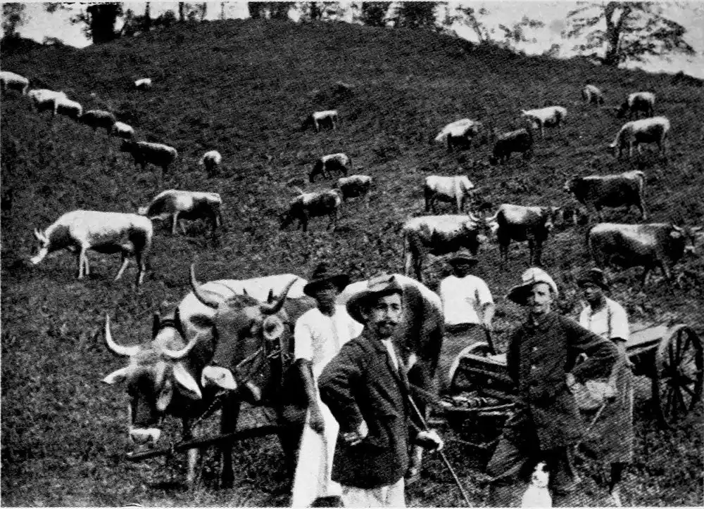 The Institute at Victoria comprised a botanic garden and botanical and chemical laboratories, and the work carried on there included the raising of tropical economic plants, experiments in plantation culture and manuring, &c. Since 1910 young natives were trained as plantation managers in the agricultural school attached to the institute. At the cattle-breeding stations at Buea, Dschang and Djuttitsa (in the Dschang district), and Jaunde, the breeding of Allgau bulls and cross-breeding experiments with Allgau bulls and the indigenous humped cows were{52} carried on with the object of obtaining draught cattle for the several districts and supplying meat and dairy produce to the Europeans. At the Dschang School of Agriculture, young natives were instructed in the use of the plough and in other rational methods of agriculture. At the Kuti station, in the Bamum district, and the Pittao station, in the Adamana district, the advancement of cotton cultivation is the primary study, but the programmes of work also include comparative cultivation experiments with indigenous cereals, pulses, root-crops, and fodder plants, the use of the plough, manuring and rotation experiments, cattle-breeding and cattle-keeping, and the training of native travelling instructors.