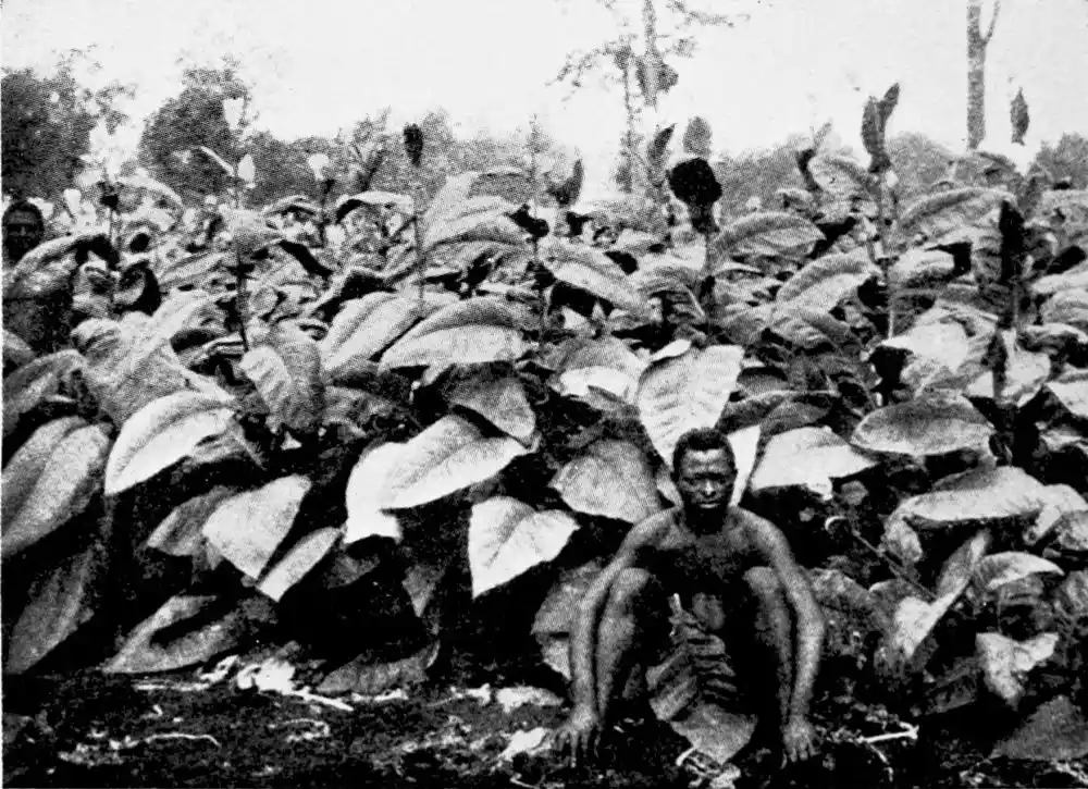 Much was expected of tobacco planting, especially in Bibundi, where tobacco was planted at first, and the quality was excellent, although the cultivation was proved to be too dear and too difficult on account of the dampness of the climate. In 1902 there was a deficit of 200,000 marks, and for some time the{33} cultivation was discontinued. Attempts were made in 1911 to encourage tobacco planting in the German colonies by the guarantees of a definite price for quantities of at least 100 cwts. raised and prepared in those colonies. The planted area in plantations in the Cameroons increased from fifty acres in 1911 to 383 in 1912; 230 acres of the latter had yielded a crop. In view of the expensive nature of the cultivation, it was hoped that Cameroons’ leaf for wrappers would gain a good market.