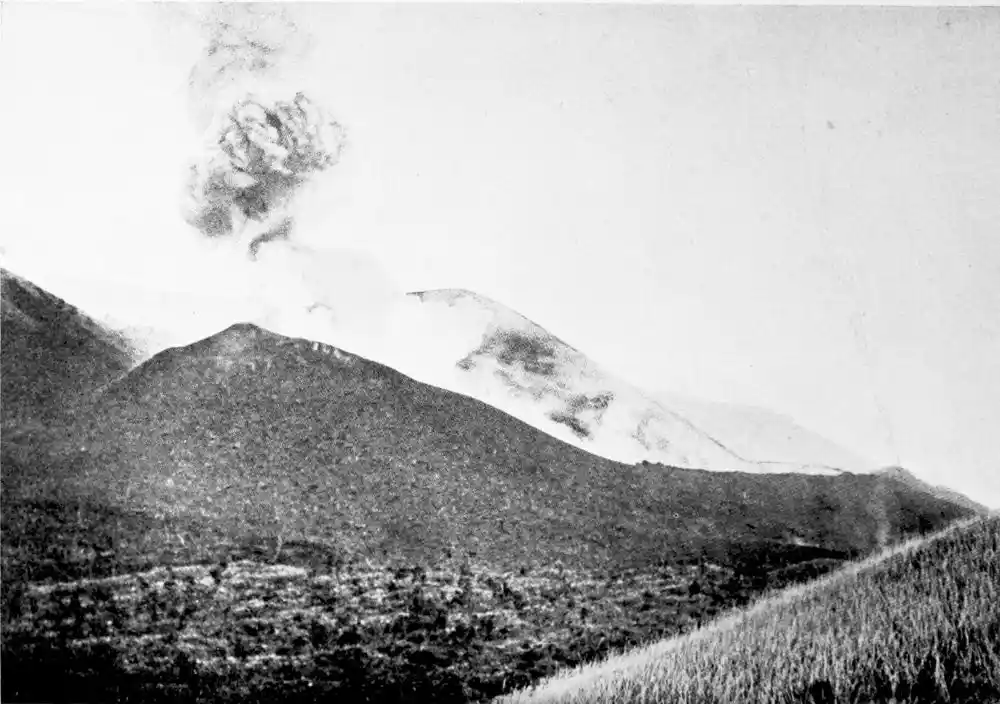 The massive of the Cameroon Mountains presents{14} a district which is singular with regard to its climate, vegetation and animal life. At its base is a primeval forest, and the climate is tropical and humid. Debundja and Bibundo have practically no dry season, the rain being continuous nearly the whole year round. On the east side, the rainy season lasts for only two to three months in the year. Buea, which lies on the lower slopes of the misty region, has a fresh, cool climate, and is quite free from malaria. The temperature varies frequently, in some cases from 1·5° to 2° Cent. in the course of two or three minutes. Instead of the usual heavy tropical rains, it has only a drizzling rain, and the humidity penetrates everywhere, even the dwellings. On the upper slopes, when the north-east wind blows, it is icy cold, except at midday. Hoar frost is frequent and snow fairly so. The mountain is nearly always cloud-capped, and it is seldom possible to obtain a really clear view of the summit.