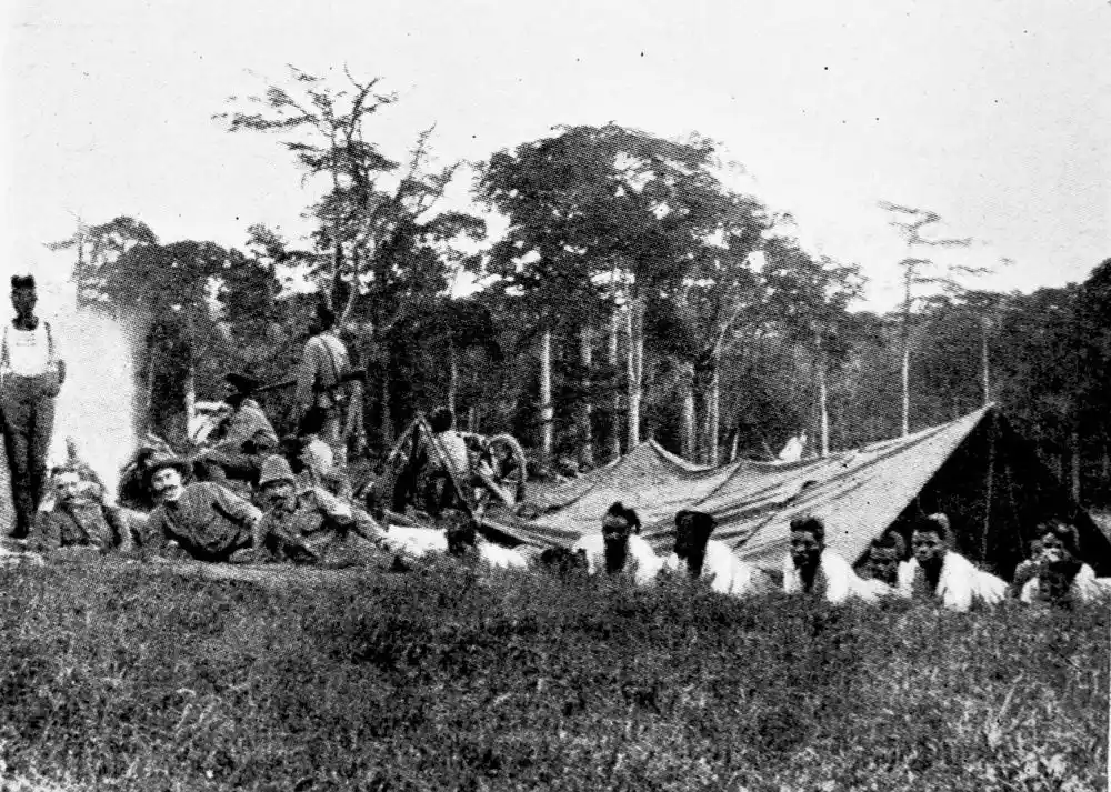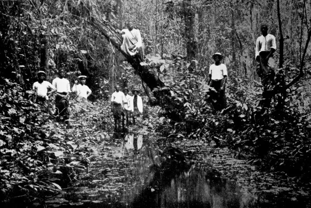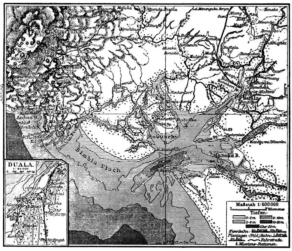 The knowledge of the coastal district was extremely limited. Burton and Mann had ascended the Cameroon mountains in 1861-62. In 1872-75 three German scientists, Buchholz, Reichenow and{6} Lüders, made important zoological discoveries, while Rogozinsky, a Pole, in 1883, reached as far as Lake Barombi. But all efforts to penetrate into the interior were frustrated by the impracticable condition of the roads, the unhealthiness of the coast district—which was for the greater part uninhabited virgin forest—and by the hostile attitude of the natives.