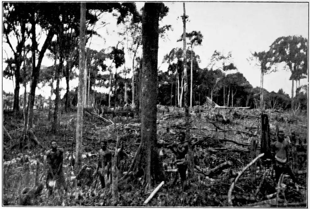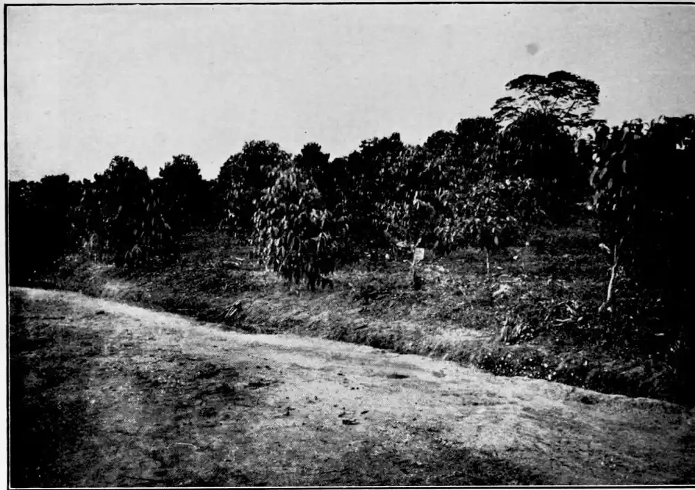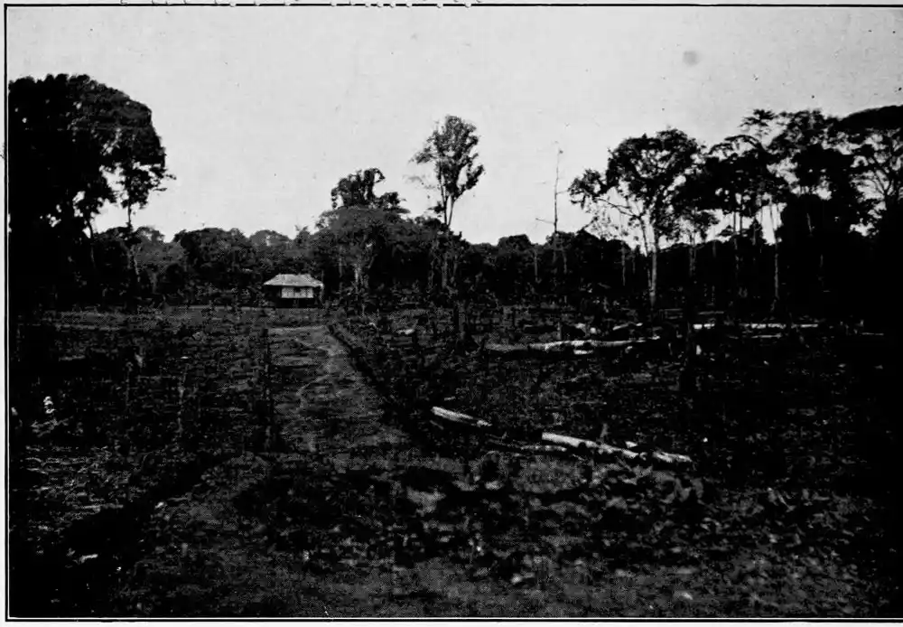 THE Cameroons were regarded by the Germans as a plantation country of the highest promise, and the proximity of the Cameroon Mountain to the coast, facilitating the realisation of the products, render this part of the colony an ideal area for the planter. All the largest plantations are situated in this district, which has been extensively developed, and its products have already assumed considerable proportions in the export statistics of the dependency. The laying out of a plantation in Cameroon is by no means an easy task, as the fertile soil must be drawn from the primeval forest. And as the Cameroon primeval forest has no equal for vastness and impenetrability, laborious and costly preliminary work is necessary before any real planting can be attempted. On the whole it is very much the same as in East Africa, with the distinction that as a rule in the latter colony there is only the so-called bush to clear, while in Cameroon one has to deal with high-grown primeval forest.