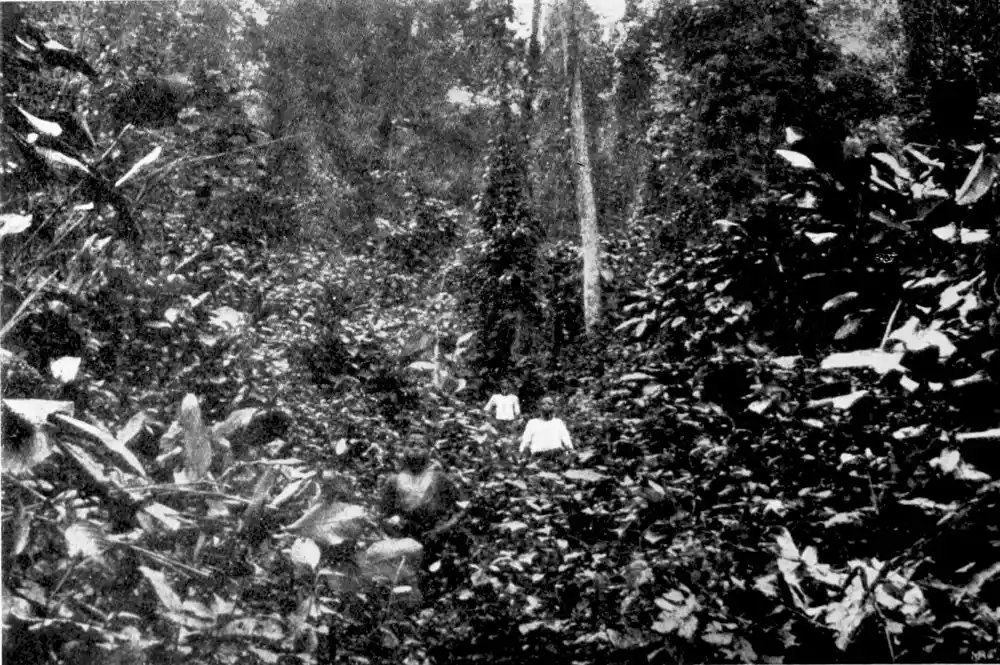 Regarding the cultivation of coffee, the greatest hopes were raised in the first years of occupation of the colony. The Cameroon Mountains resemble in every respect the island of San Thomé and Fernando-Po, where, in 1884, a flourishing coffee cultivation{32} existed. Nothing was more natural than the expectation than that a fresh impetus would be given to coffee cultivation on the mainland, but these hopes were not fulfilled, and now scarcely any coffee plantations are to be found. Tea was planted in Buea by Deistel, and the tea-shrub developed splendidly.