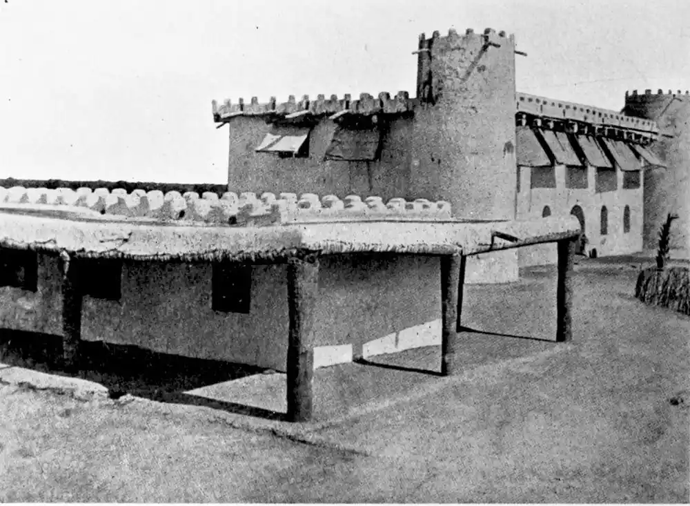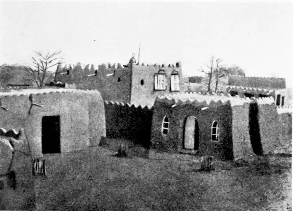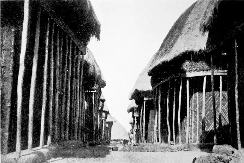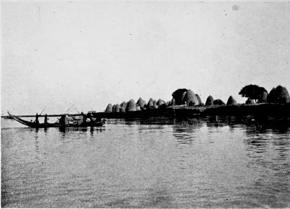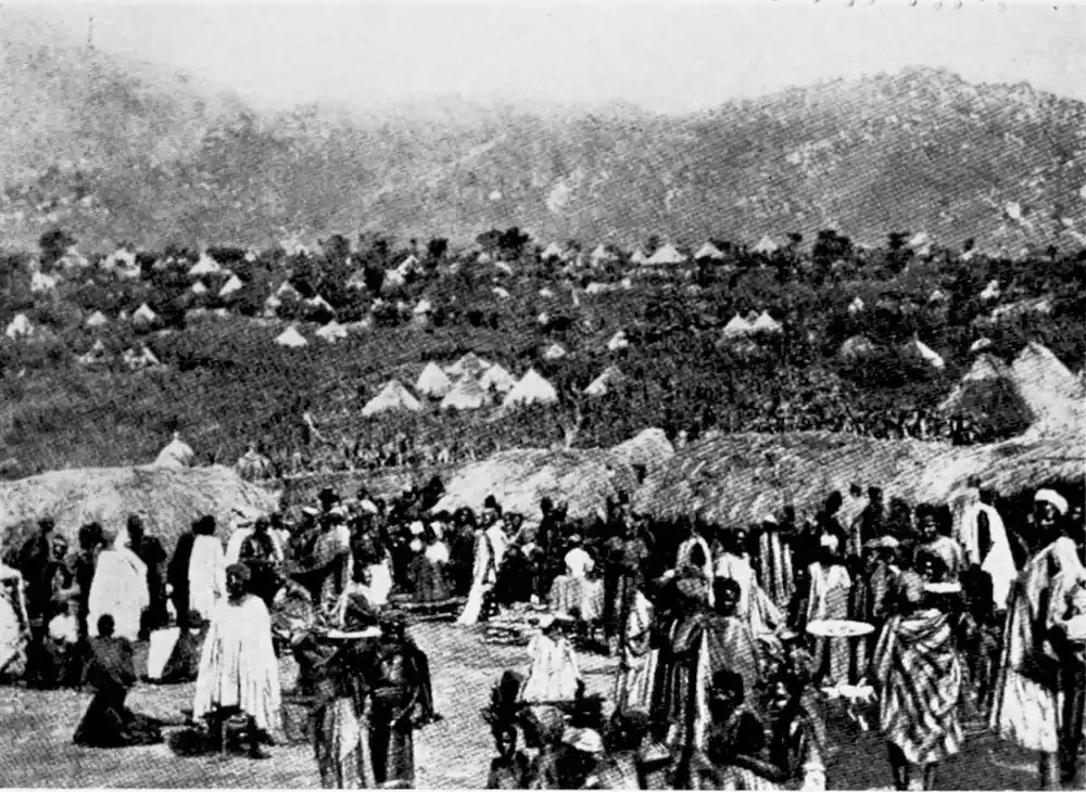 “The boundary after crossing the Gazuba River, a tributary of the Teraba, again ascends into an unexplored continuation of the Banjo highlands, and drops into the plain of the Donga Valley. The inhabitants here are a mixture of Jukums and Zumperis, but there are numerous settlements of Hausas, whose trade consists of smuggling rubber and kola nuts into Nigeria without paying the German tax. The pagans, who live in ‘swallow-nest’ villages on the heights, cultivate guinea-corn and root crops, while yams, cassava and sweet potatoes grow in abundance in the interstices between the huts. The boundary reaches the Donga, and after following the river for fifteen miles and crossing the plateau of the Wanya Moun{73}tains, reaches the plain of the Bamana Valley, in which oil palms are first encountered.