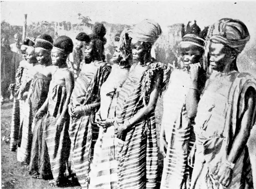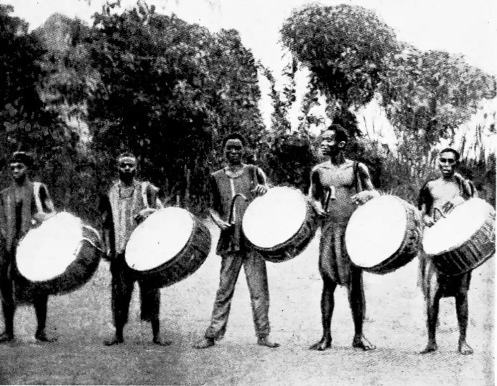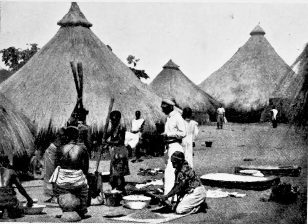 “They are very fond of dances and plays, which, accompanied by songs, are held on the occasion of the death of a chief or the headman of a compound, also at births and marriages. These dances are often kept up for several days when the host is rich enough to supply the food and drink, the latter being an intoxicating liquid distilled from guinea-corn.
