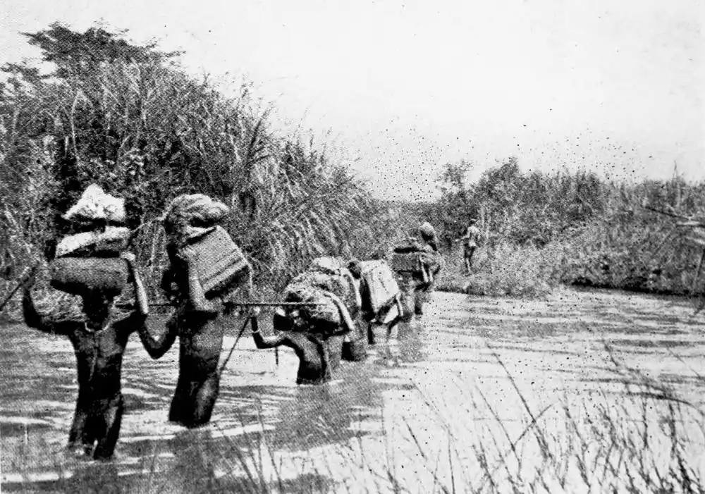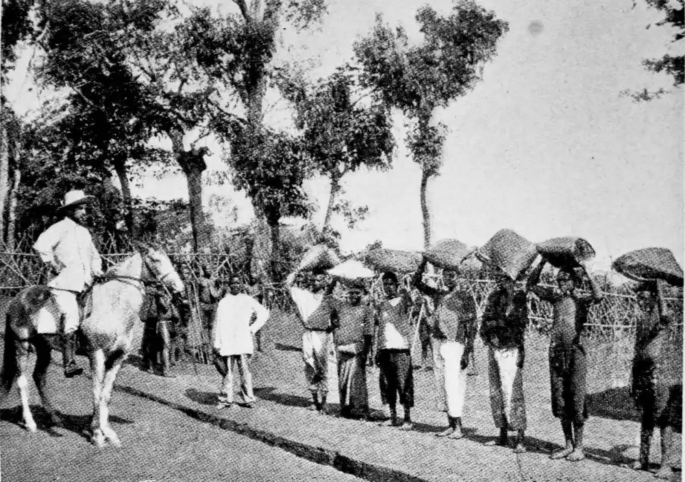 The greatest drawback to the systematic development of the Cameroons is the naturally bad means of communication as regards both roads and waterways. The country being largely of steppe-like formation, the rivers are frequently interrupted by rapids and waterfalls. The chief rivers, the Munga, Wuri, and Sanaga, are only navigable by steamers for a distance of seventy kilometres. Beyond this point, litter-transport has to be employed, and as bearers can only carry loads of 60 to 70 lbs. for a distance of from twenty to twenty-five kilometres a day, and as the{82} distance from Duala, the coast station, to Central Cameroon is a thirty days’ journey, and to Lake Chad twenty days’, few products, except ivory and rubber, can bear this expensive means of transport. The most important tasks before the Government which is entrusted with the future of the Cameroons is the amplification of the means of communication, the encouragement of native civilisation, the exploitation of the economic resources of the valuable hinterland, and the extension of the plantation system. The enormous physical difficulties in the way of railway construction must not be under-estimated. The country is covered with colossal tropical growths, which must be cleared, the plague of sleeping-sickness must be stamped out, and the dreaded tsetse fly banished. In such regions railway building is arduous and costly, but not until the rich regions hitherto unreached have been brought into communication with the coast, will the Cameroons begin to profit by its “unlimited possibilities.” {83}