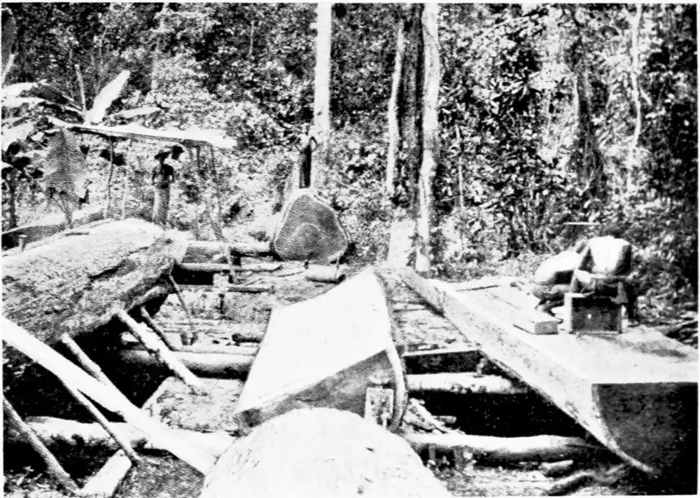 A large increase, amounting to 270 per cent. in the production of building and other timber, took place in 1911. The first place in the exports is held by Cameroons mahogany, which is stated to be increasing gradually in value in the market; its exports having risen in value from £7,022 in 1910 to £22,000 in 1912. The next wood in importance is Cameroons ebony, the exports of which have been as follows: 1909, 672 tons, worth £3,038; 1910, 1,221 tons, worth £6,090; 1911, 1,652 tons, worth £6,777; whilst in 1912 the value of the shipment was £9,055. The increase of exports has been largely due to an increase of cutting by the natives, and this has entailed a considerable amount of robbery by them. As a consequence, timber exploitation on Government{17} lands was entirely prohibited to natives in the period 1912-13, and concessions were given to Europeans with much caution; a decrease in the production was therefore expected. A difficulty regarding the exploitation of timber in the Cameroons is the lack of good waterways in the forest regions.