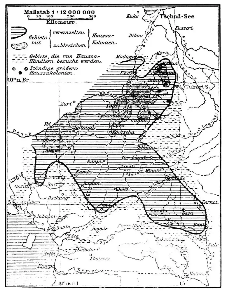 Although the commercial activities of the tribes inhabiting the African Mohammedan empires, and{5} the construction of trade routes connecting Senegal with the Red Sea, had opened up the Soudan to Europeans, the territory which since 1884 has been known as German Cameroon was practically unexplored at the beginning of the nineteenth century. In 1822 an English expedition succeeded in reaching Lake Tchad and exploring its western and southern boundaries. This discovery was supplemented in 1851-52 by Barth and Overweg. Barth went from Kuka to Yola, and discovered the upper course of the Benue. He penetrated further, through the country south of Lake Chad to Bagirmi. In 1854 Baikie went up the Benue, as far as Djen, about fifty kilometres from Yola. Rohlf’s journey in 1865-67 and Nachtigal’s in 1869-74 are of little importance. In 1879 began the activity of Edward Flegel, who, on the steamer Henry Benn, navigated the Benue as far as Garna. Of much greater importance were the explorations of the Benue district in 1882 and 1883, the southern limit of which was marked by the towns of Ngaumdere, Banjo, Gaschaka, and Takum.