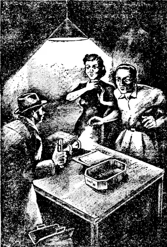 Rocks staggered to his feet. He leaned against the edge of the table, panting, fighting for breath and strength. Sharp was across the table from him. He was aiming the instrument.