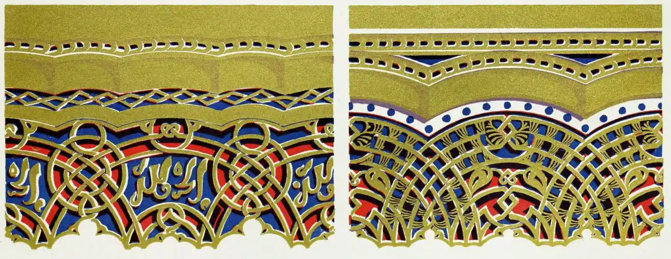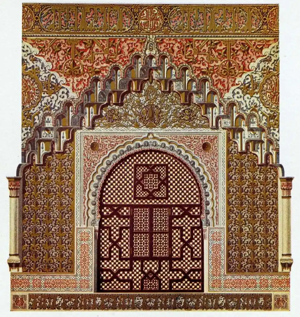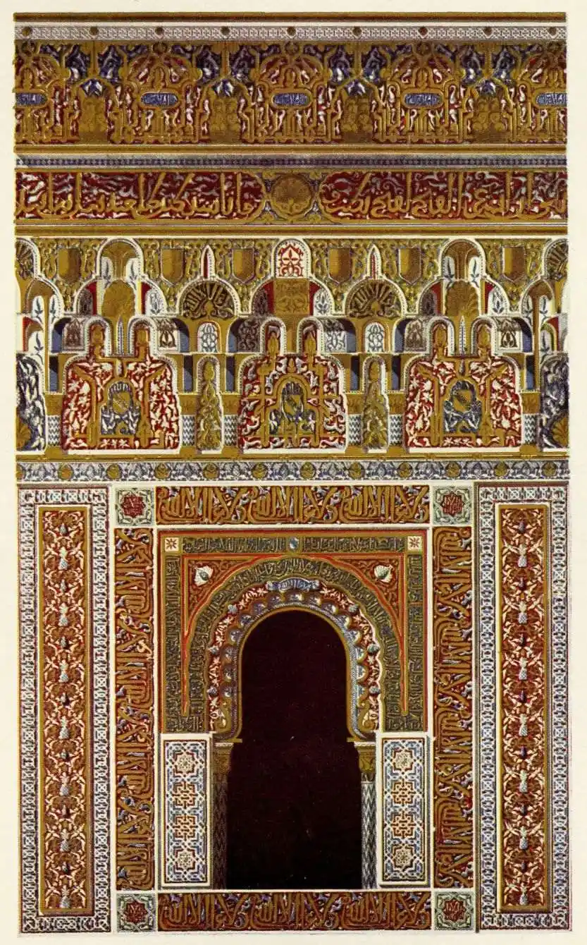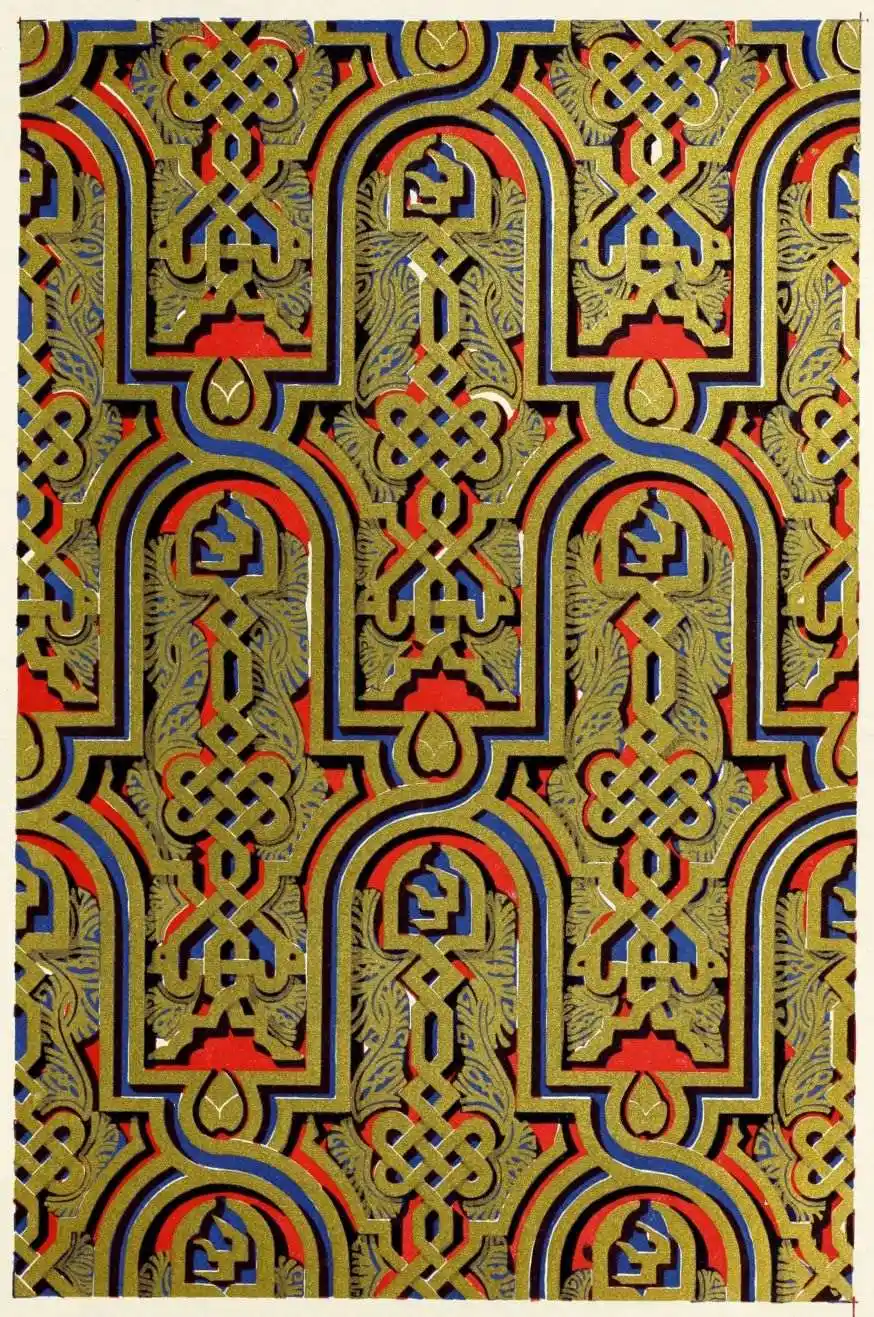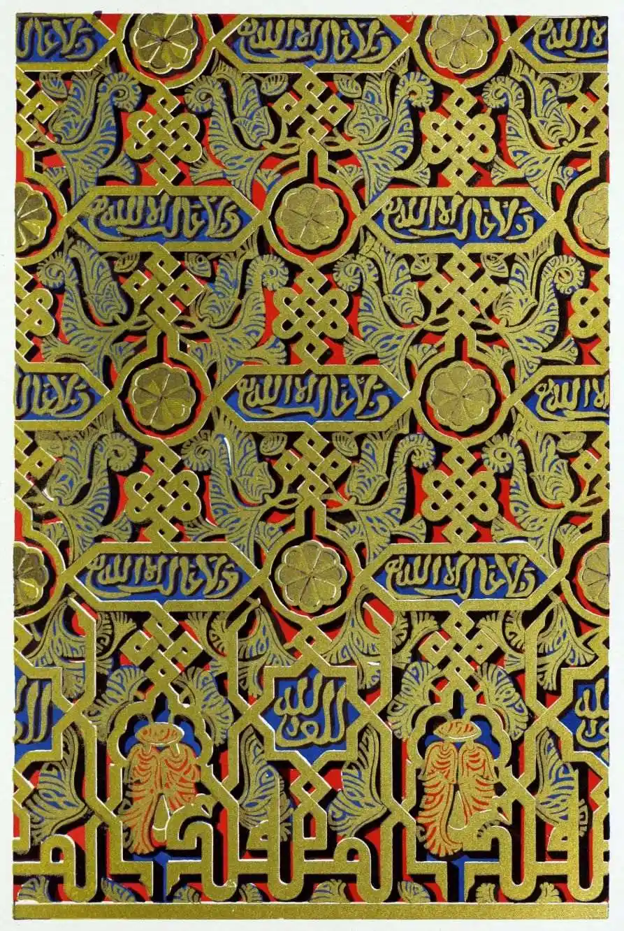 [9] Edited by Pablo Lozano. The antiquities and history of the Moorish domination in Spain remained unheeded until representations were made that research and accurate delineation would alone make their monuments intelligible. The Royal Academy of St. Ferdinand was commissioned to make drawings of the Palace of the Alhambra and of the Mosque of Córdova. The result of their labours were published at Madrid, in 1780, in a folio volume entitled as above, with sixteen plates of Arabic designs, accompanied by a few pages of letterpress. It is an exceedingly rare volume.