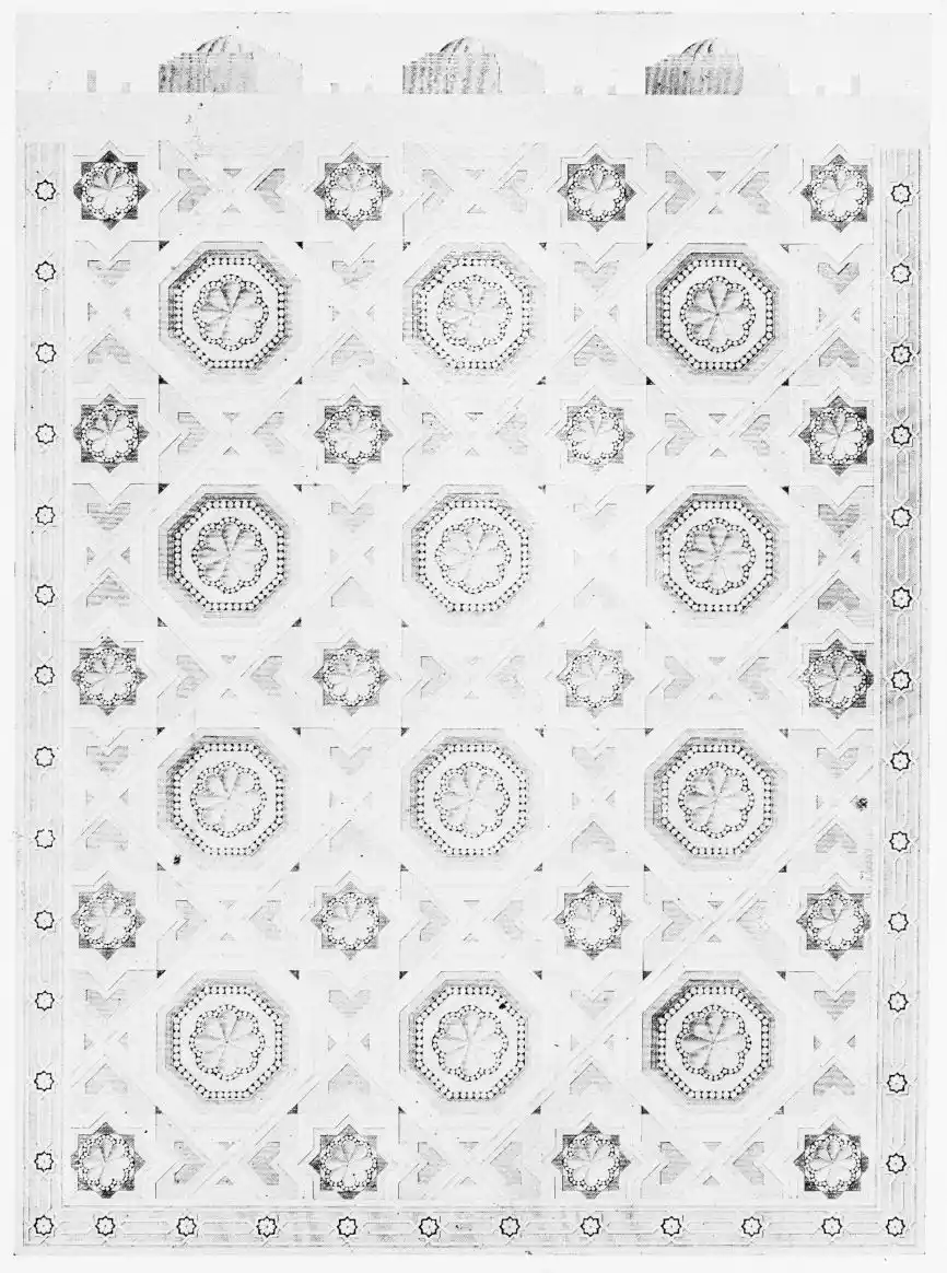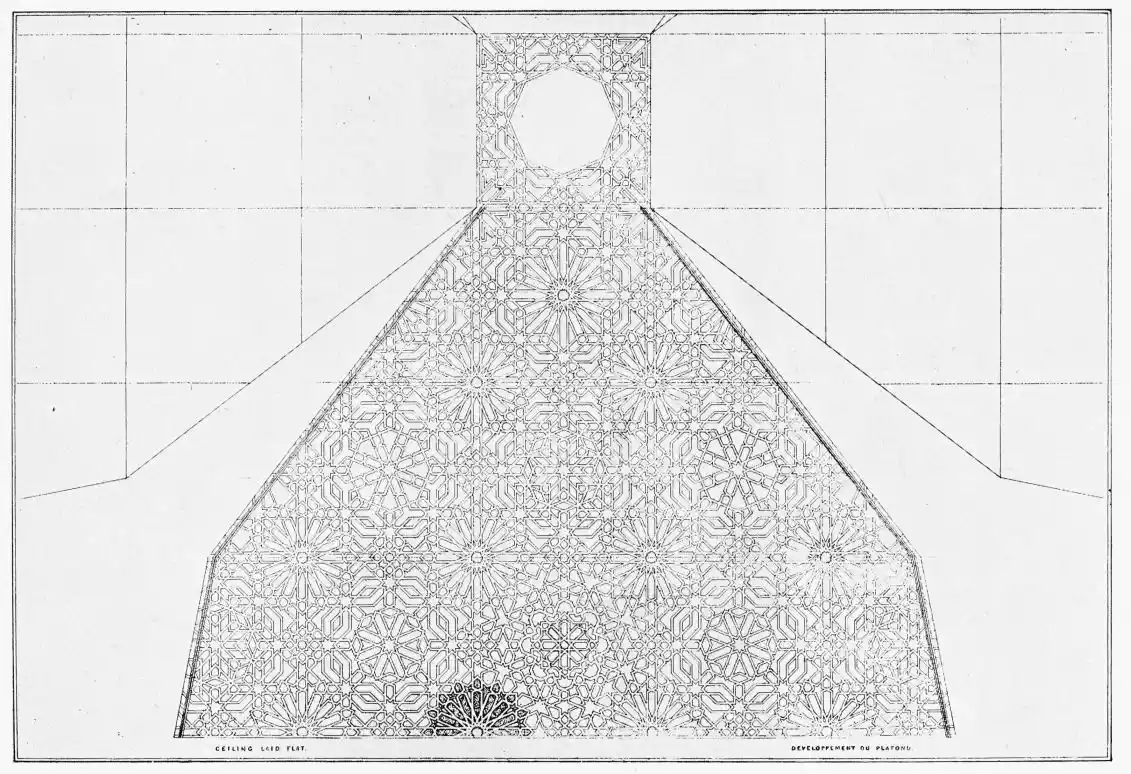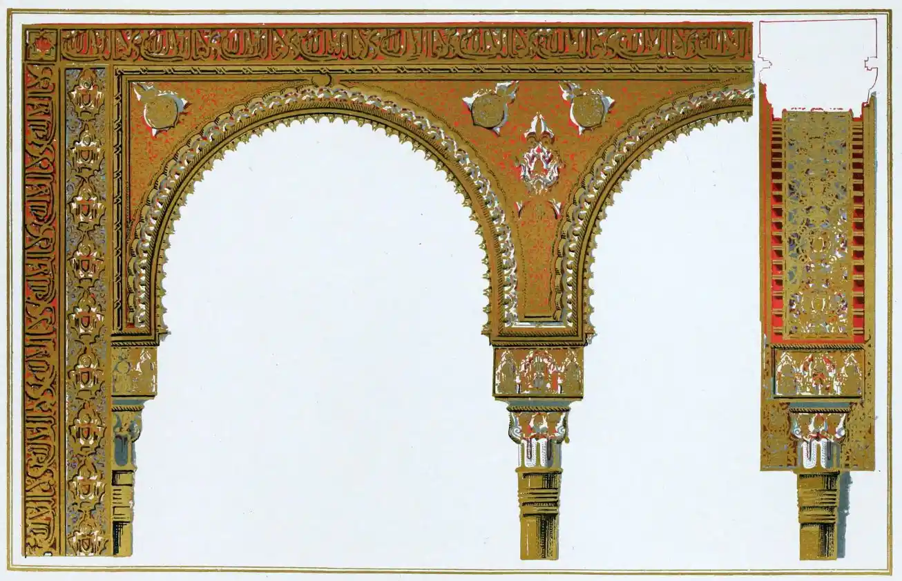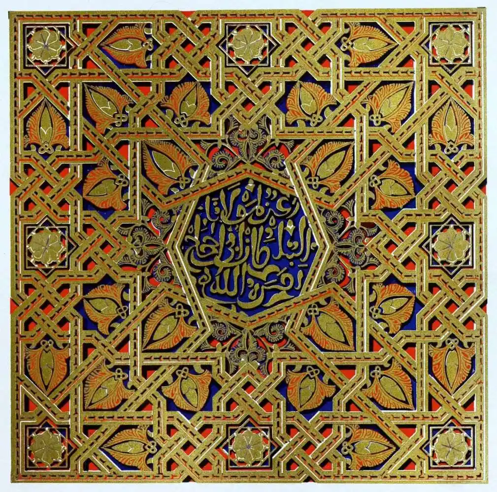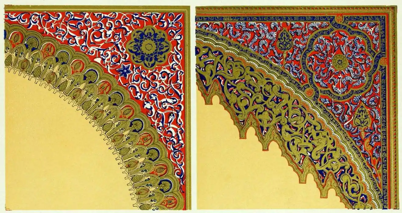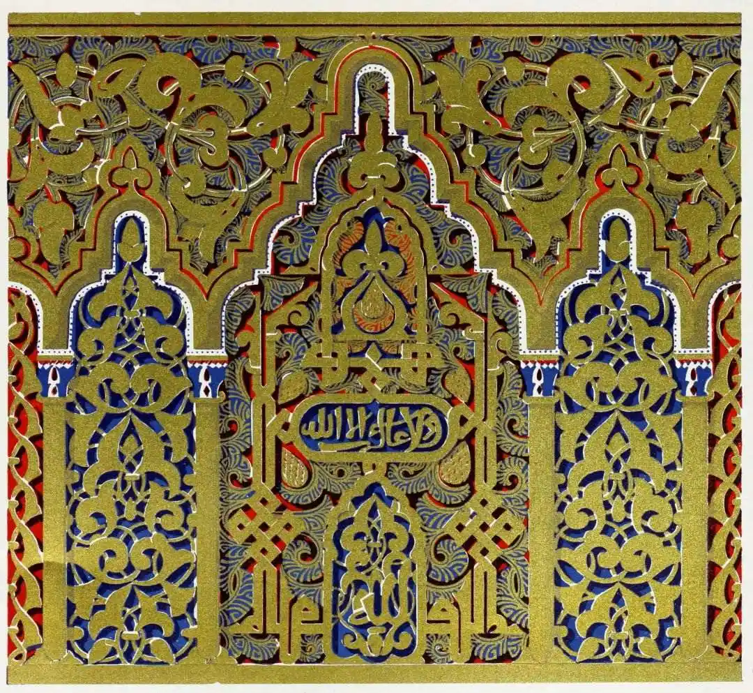 [9] Edited by Pablo Lozano. The antiquities and history of the Moorish domination in Spain remained unheeded until representations were made that research and accurate delineation would alone make their monuments intelligible. The Royal Academy of St. Ferdinand was commissioned to make drawings of the Palace of the Alhambra and of the Mosque of Córdova. The result of their labours were published at Madrid, in 1780, in a folio volume entitled as above, with sixteen plates of Arabic designs, accompanied by a few pages of letterpress. It is an exceedingly rare volume.