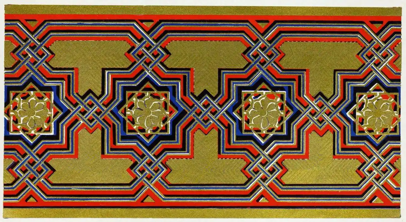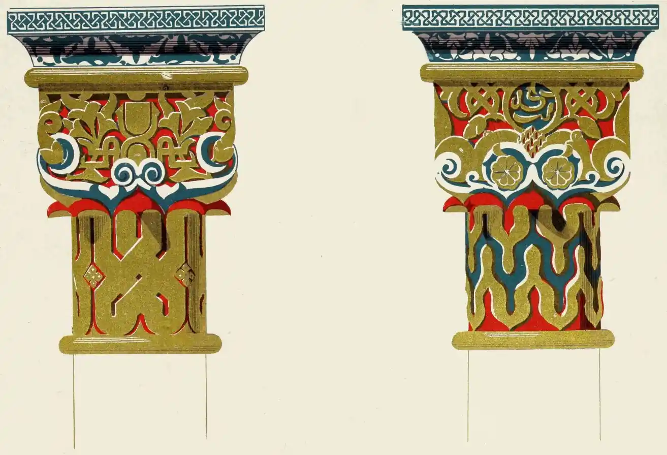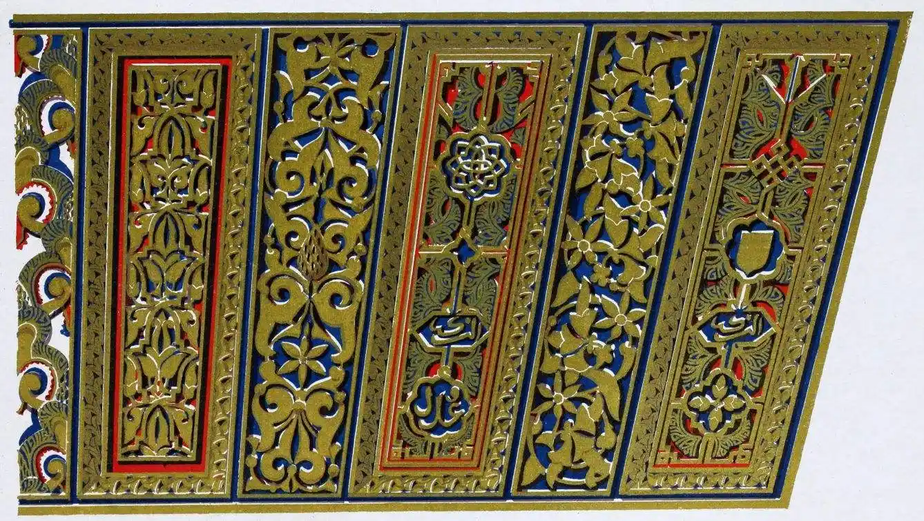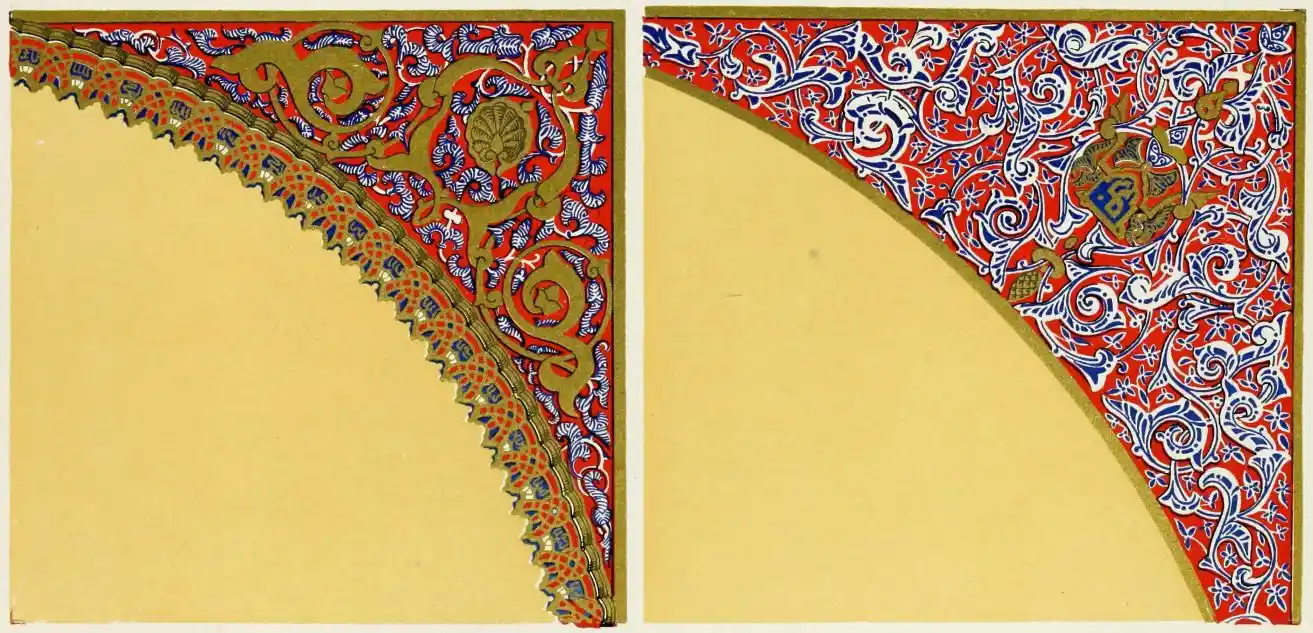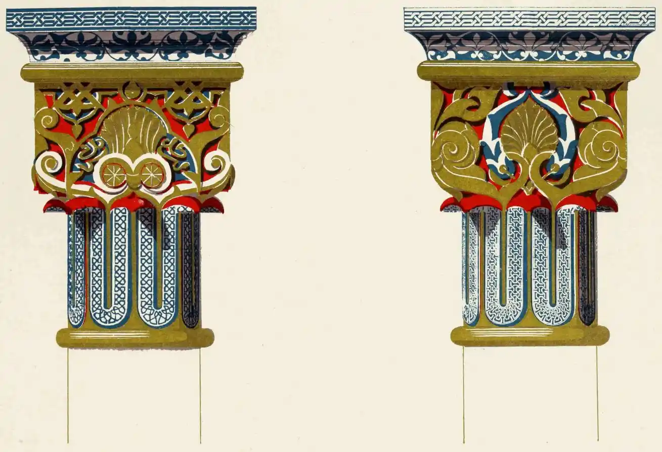 [9] Edited by Pablo Lozano. The antiquities and history of the Moorish domination in Spain remained unheeded until representations were made that research and accurate delineation would alone make their monuments intelligible. The Royal Academy of St. Ferdinand was commissioned to make drawings of the Palace of the Alhambra and of the Mosque of Córdova. The result of their labours were published at Madrid, in 1780, in a folio volume entitled as above, with sixteen plates of Arabic designs, accompanied by a few pages of letterpress. It is an exceedingly rare volume.