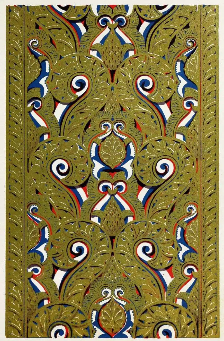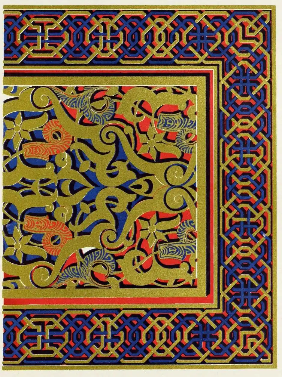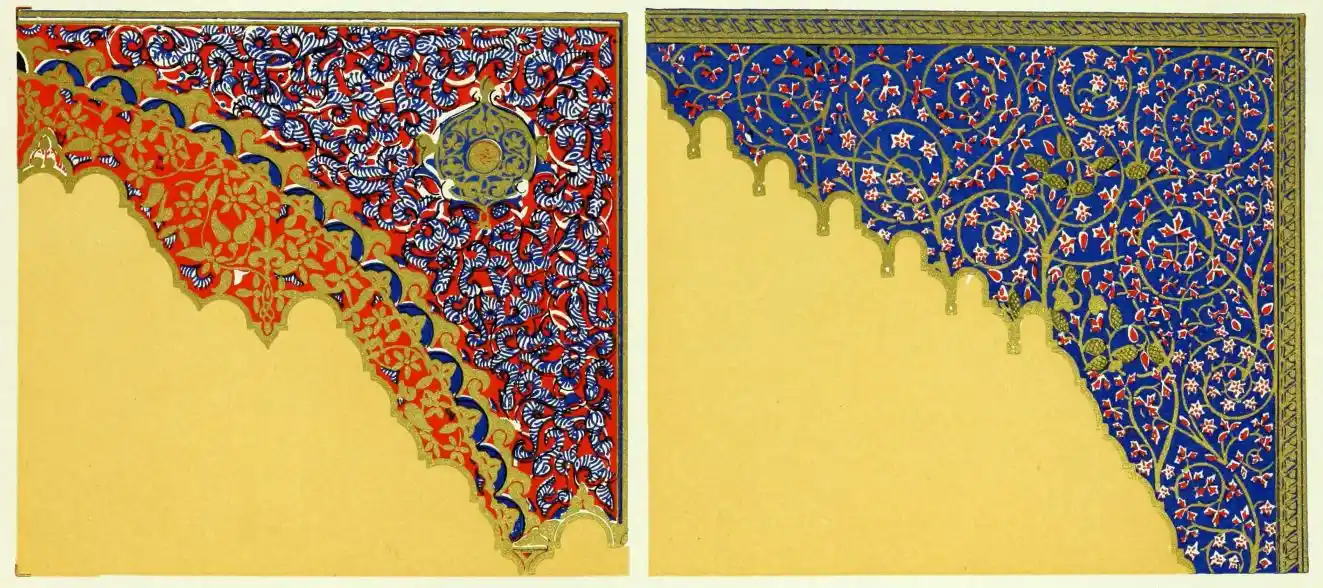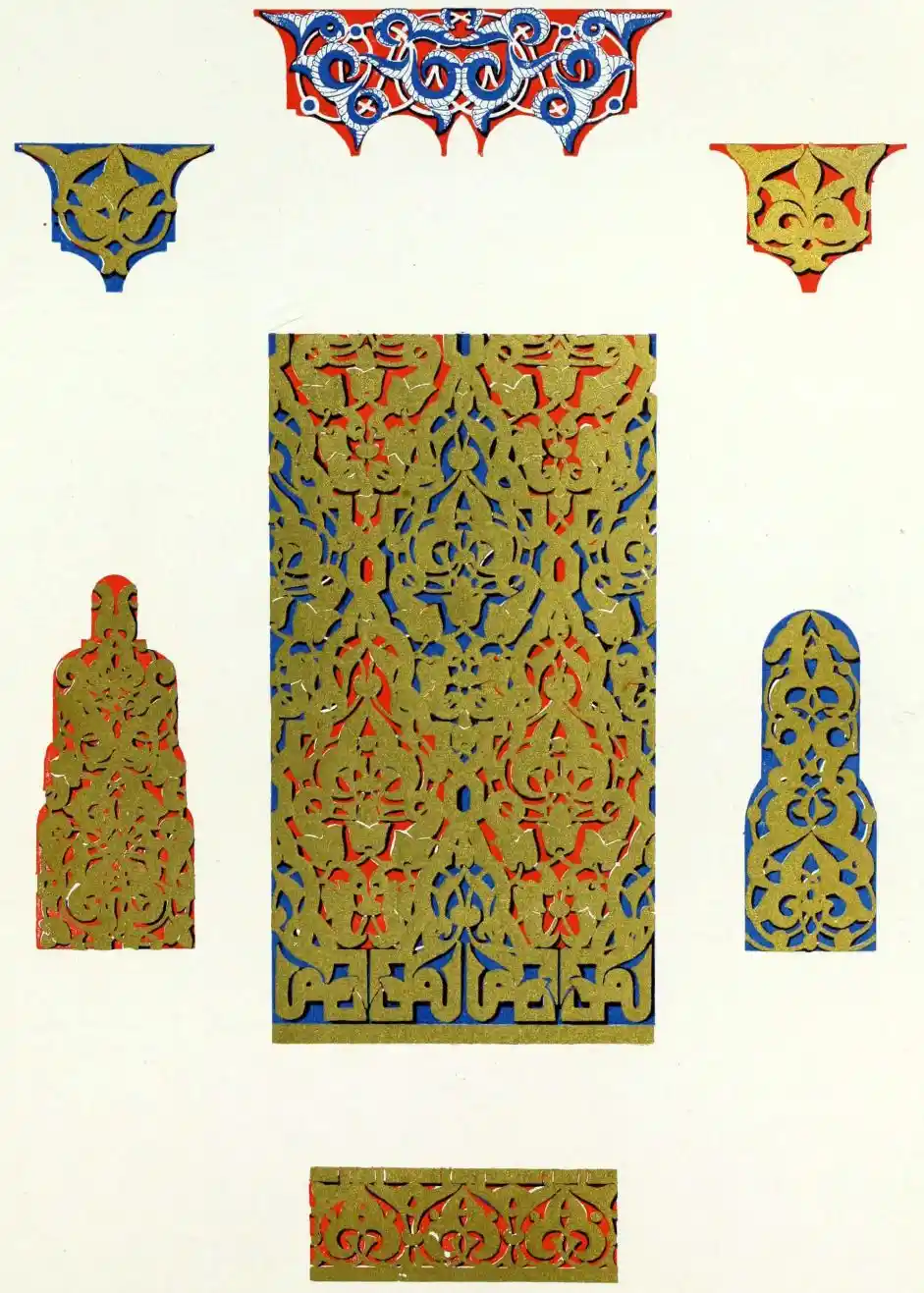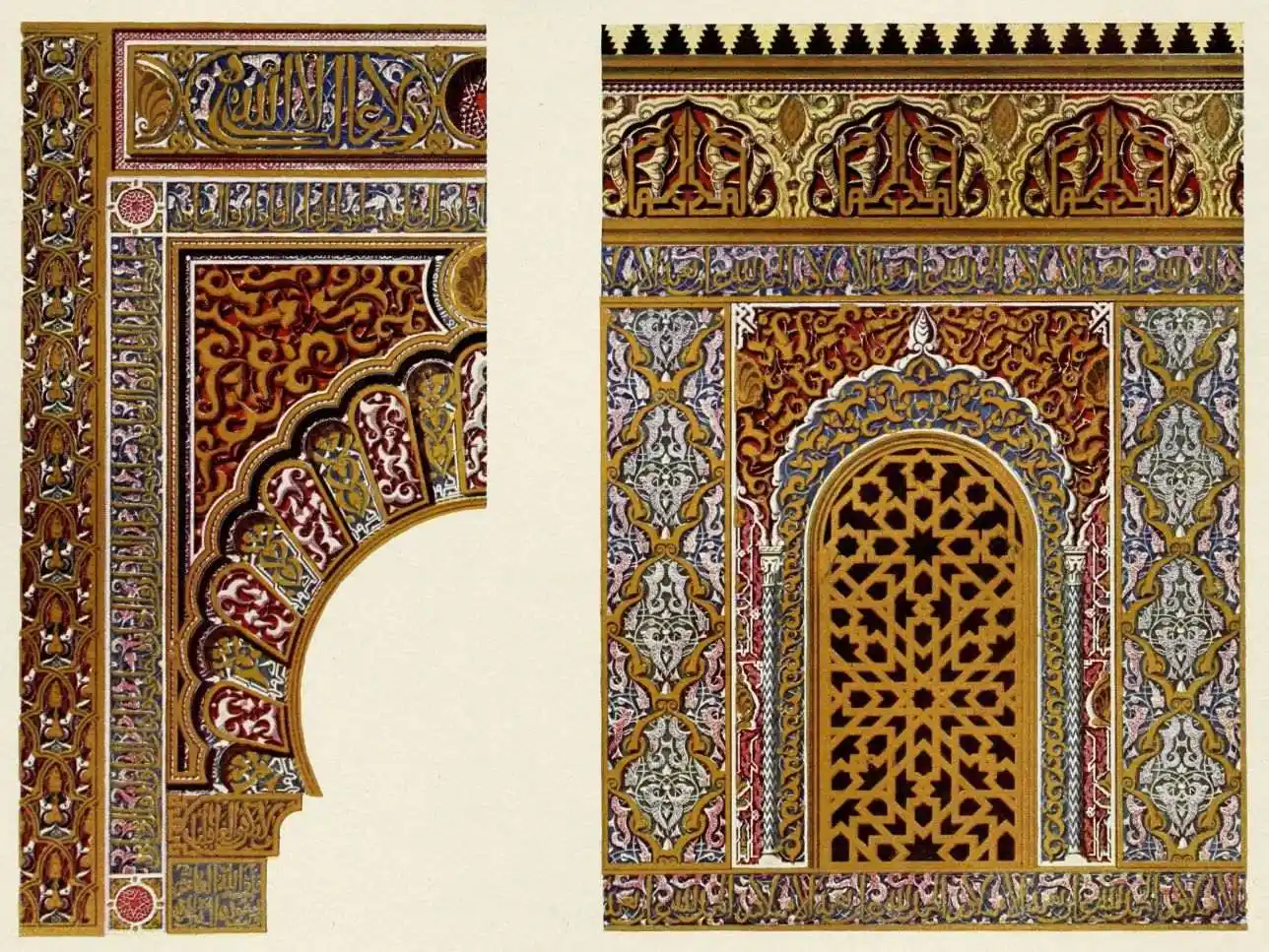 [9] Edited by Pablo Lozano. The antiquities and history of the Moorish domination in Spain remained unheeded until representations were made that research and accurate delineation would alone make their monuments intelligible. The Royal Academy of St. Ferdinand was commissioned to make drawings of the Palace of the Alhambra and of the Mosque of Córdova. The result of their labours were published at Madrid, in 1780, in a folio volume entitled as above, with sixteen plates of Arabic designs, accompanied by a few pages of letterpress. It is an exceedingly rare volume.