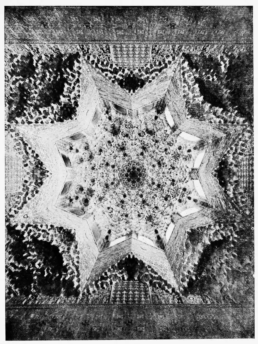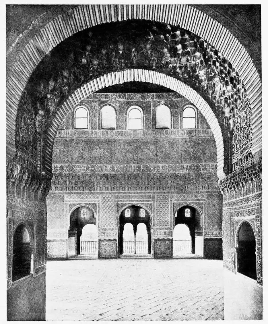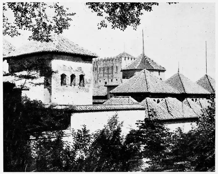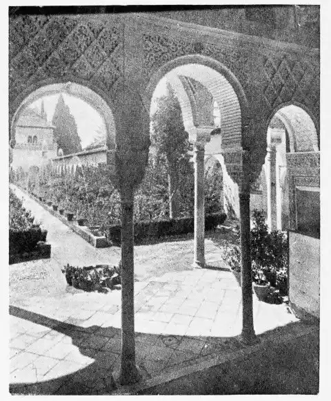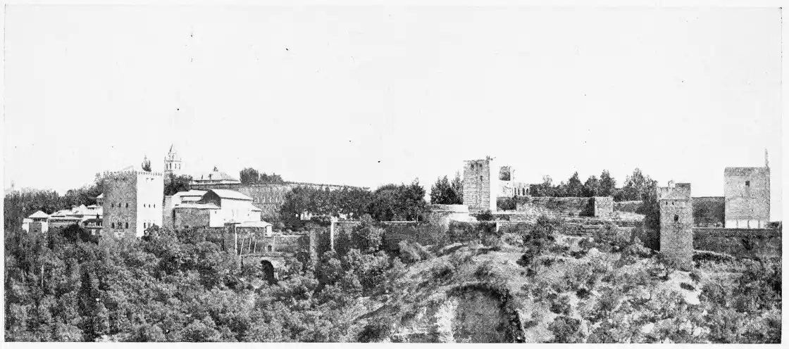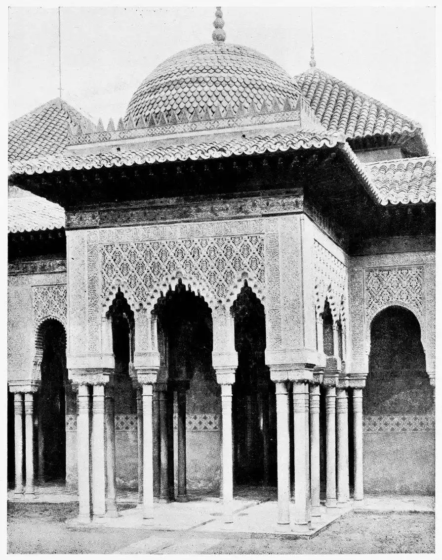 For the historical portions of the description contained in the letterpress I have levied tribute on a variety of authors. The History of the Mohammedan Dynasties in Spain, by the learned Spanish Orientalist, Don Pascual de Gayángos; Raphaël Contreras’ Etude Descriptive des Monuments Arabes; Richard Ford’s reverent appreciations; Dr. R. Dozy’s history; Mr. Stanley Lane-Poole’s The Moors in Spain; Washington Irving’s fascinating writings; and The Alhambra Album, presented by Prince Dolgorouki in 1829, containing the autographs, poems and thoughts of succeeding generations of visitors to Granada, these and many others have been drawn upon in the following pages.