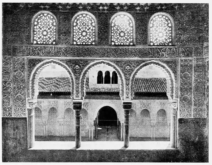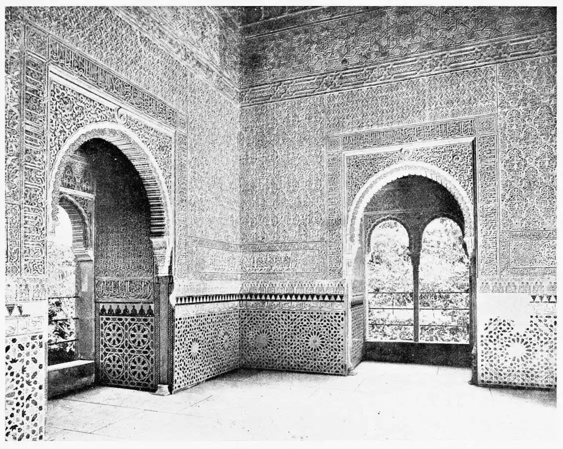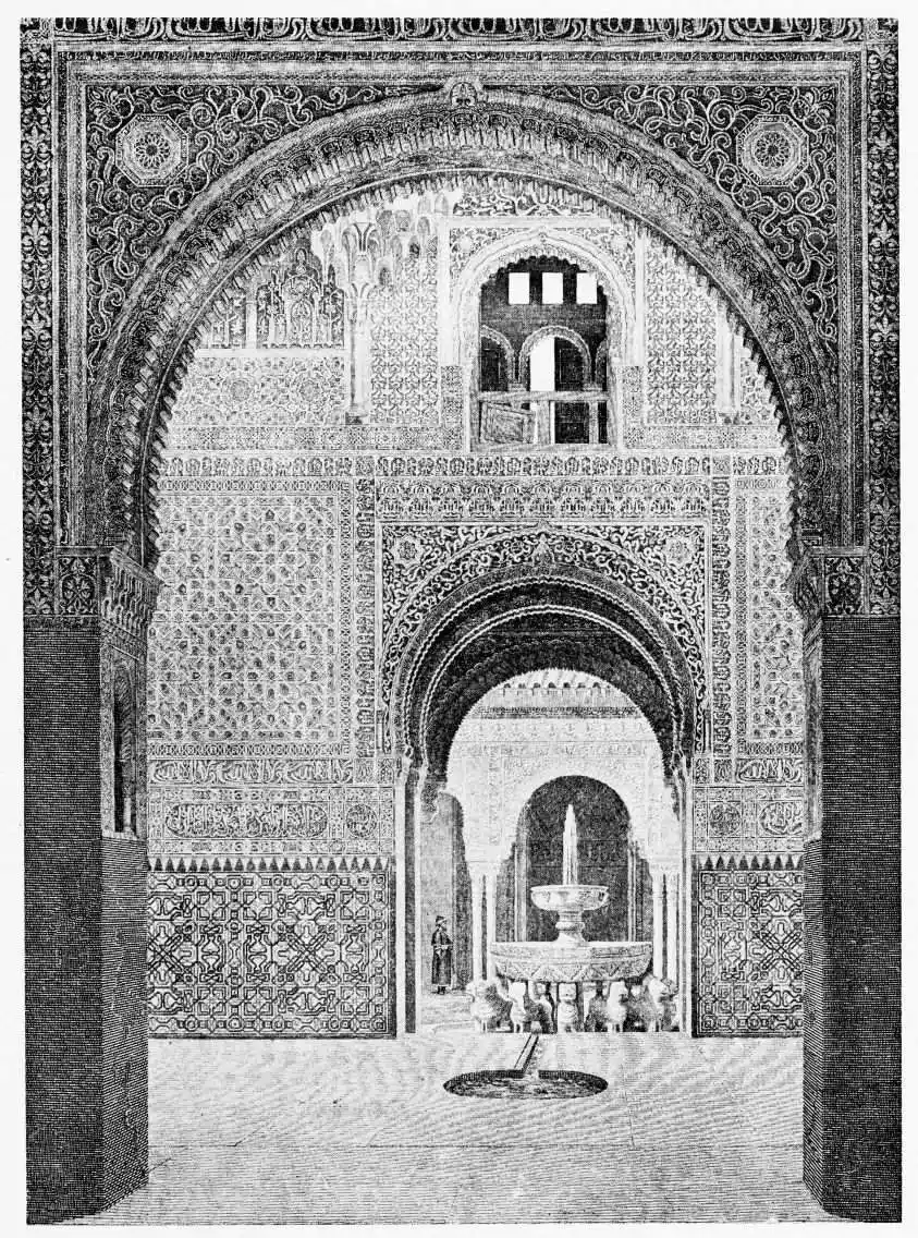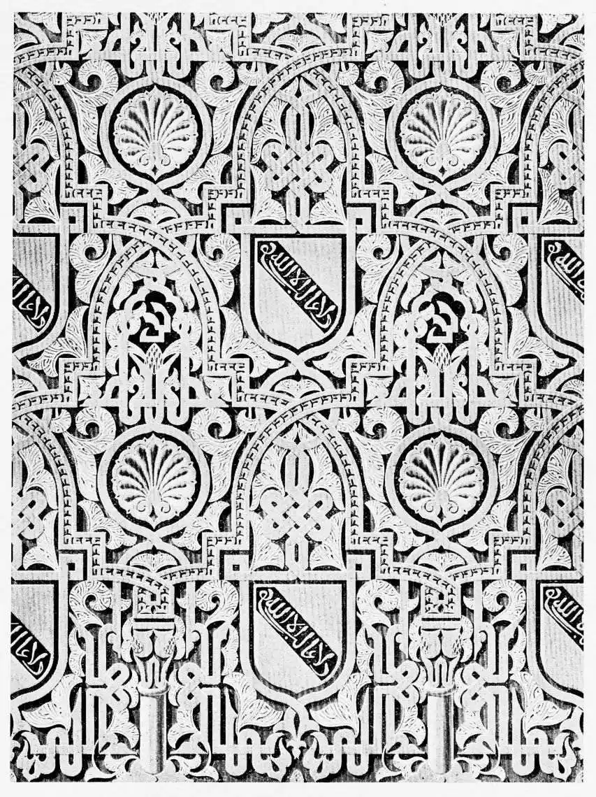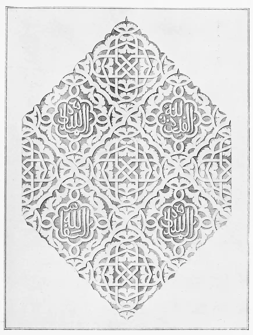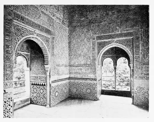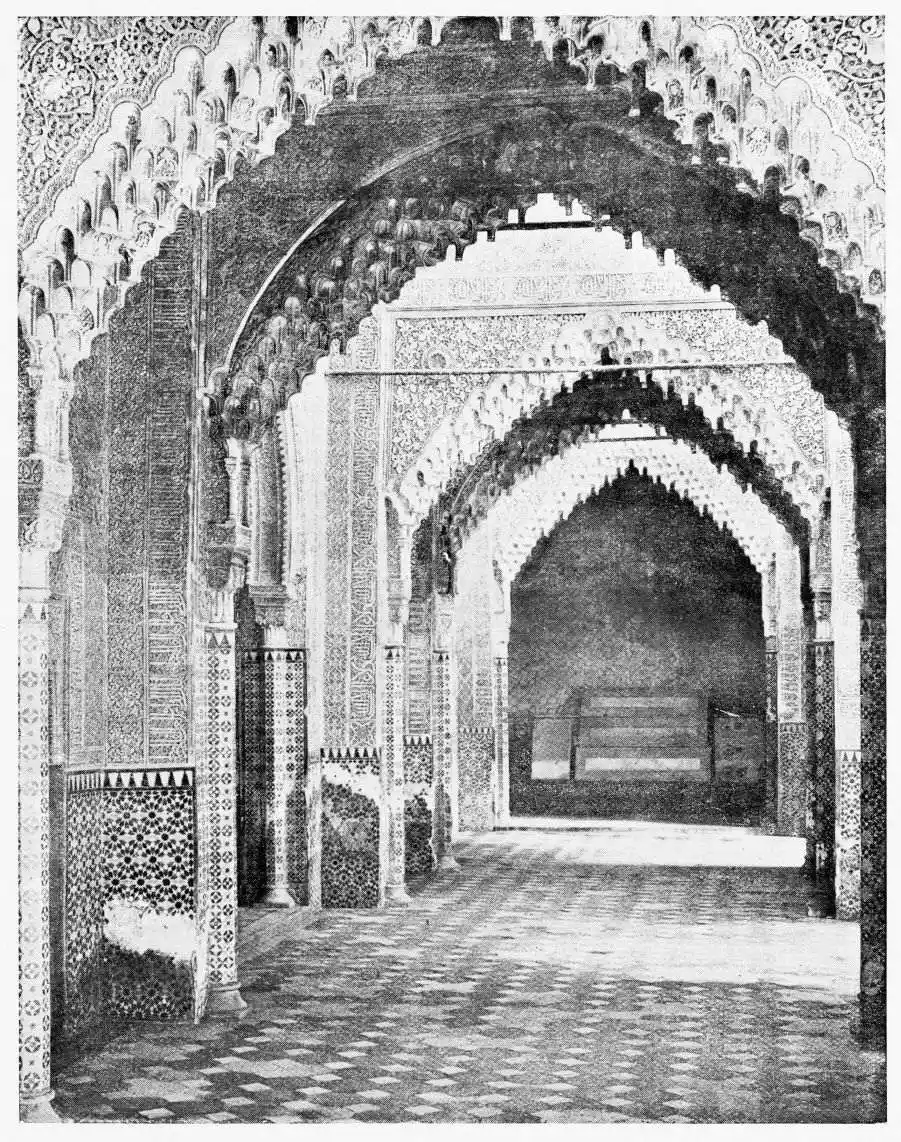Don Mariano Contreras, Conservator of the Alhambra, the son of the gifted Raphaël Contreras, who devoted thirty-seven years of his life to the restoration of the Palace—gave me the benefit of his knowledge of this unique treasure-house of art; and I have also laid under contribution the beautiful plates of Owen Jones, who disposed of a Welsh inheritance in order to produce his great work on the Plans, Elevations, Sections and Details of the Alhambra. Jones’s Grammar of Ornament, which has been described as “beautiful enough to be the horn-book of the Angels,” also contains the result of his researches in the Alhambra, which occupied him for the greater part of eleven years. A selection of these illustrations is here rescued from the obscurity of public libraries and the inaccessible recesses of private collections. The inclusion of John F. Lewis’s drawings, and the reproduction of a series of pictures by James C. Murphy, who spent seven years in the study of the artistic marvels of the Alhambra, I do not feel called upon to defend. The photographs, several of which were placed at my disposal by Don Rafaël Garzón, represent the buildings as they appear to-day; the drawings were made before the Palace was damaged by the disastrous fire of September, 1890.{ix}