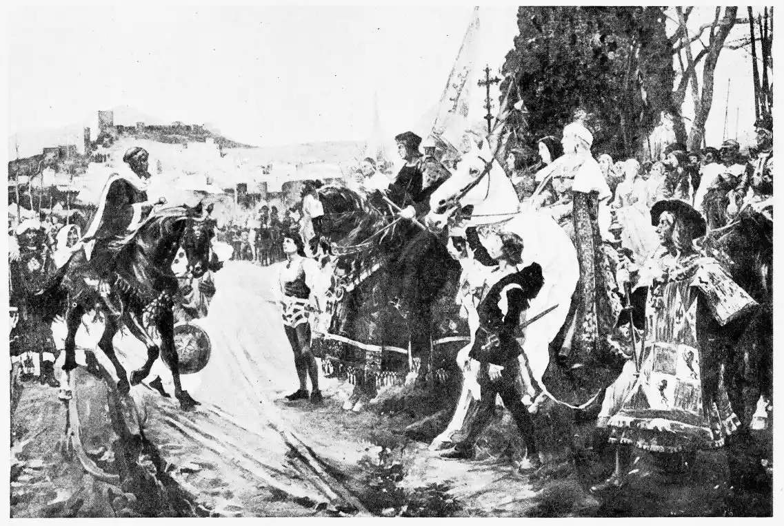 [5] It is a little singular that not only the Arab Governor of North Africa, Viceroy of the Caliph Welid, who despatched from Ceuta the invading forces under Tarif and Geb-al-Tarik, bore this name; but, eight centuries afterwards, the gallant hero who alone was able to rouse the lethargic Boabdil from his stupor to make a last stand for Islam, bore it also. The name of Musa of Granada must always be honoured as that of a fearless knight who, disdaining to surrender, at the last rode through a score of Christian knights, killing many of them; and, when too weak to continue the struggle, threw himself, encumbered with armour, into the river Xenil, thus meeting his end.