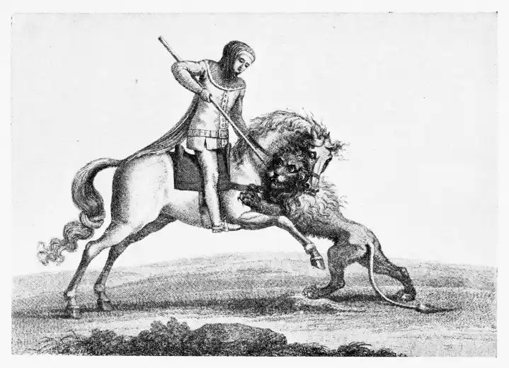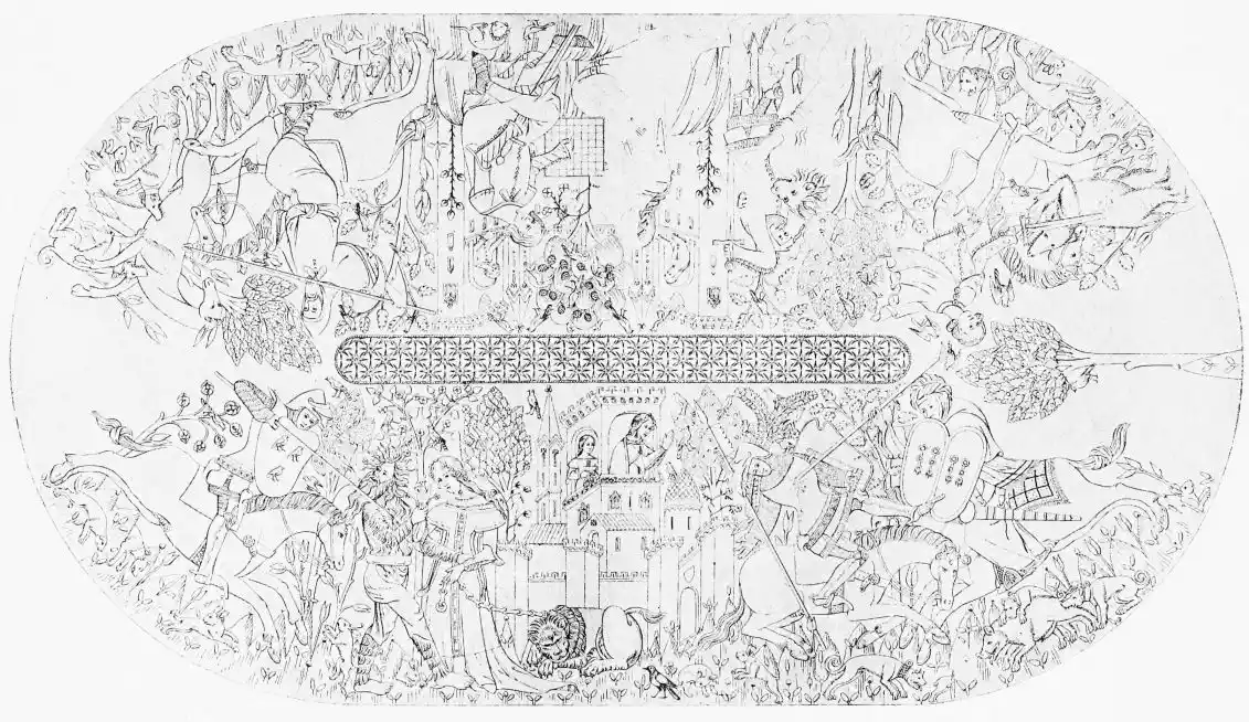 | Part of Picture in the Hall of Justice Representing a Christian Knight Rescuing a Maiden from a Wicked Magician, or Wild-man-o’-the-woods. The Christian Knight is, in turn, Slain by a Moorish Warrior | 47 |